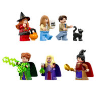 Dans la boite, 2316 pièces pour assembler le manoir des sœurs Sanderson et une poignée de minifigs avec les trois personnages principaux, Winifred, Sarah et Mary Sanderson, rejoints par Max et Dani Dennison, Allison Watts et le chat Thackery Binx.