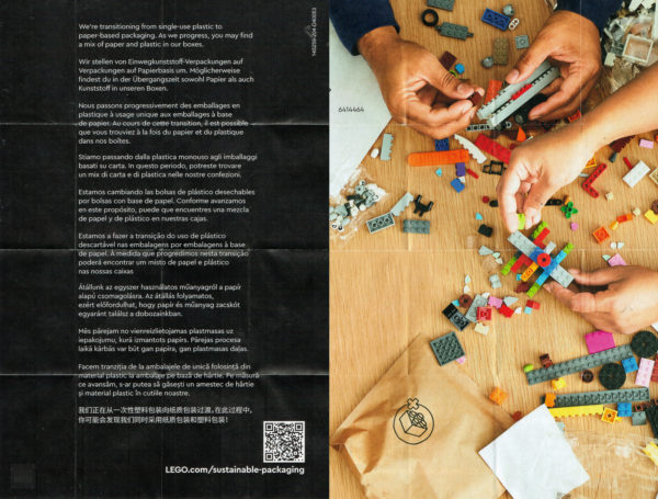 Il y a encore beaucoup de sachets en plastique dans les produits LEGO et pas beaucoup de sachets en papier, même si le fabricant nous promet depuis 2021 une phase de test qui doit en principe conduire progressivement au remplacement des sachets tels que nous les connaissons par une version en papier.