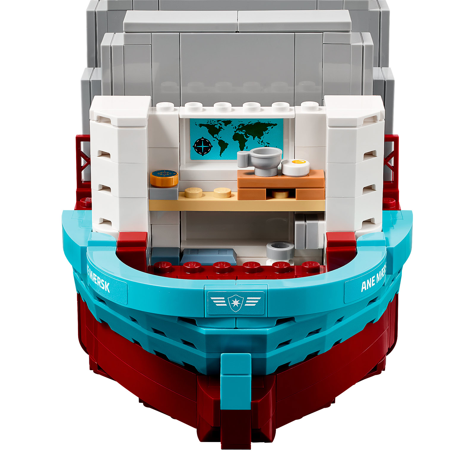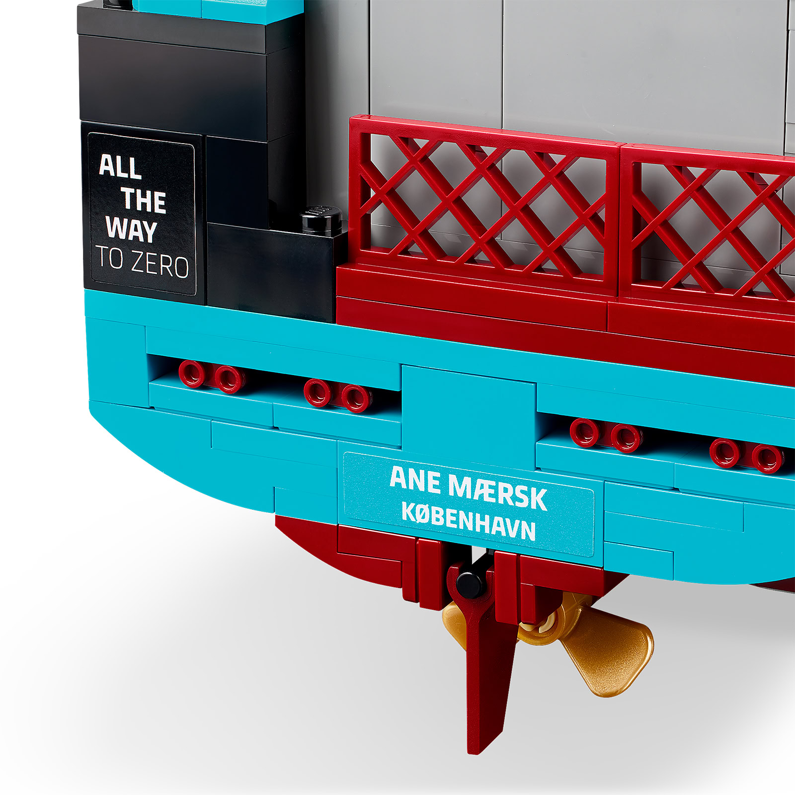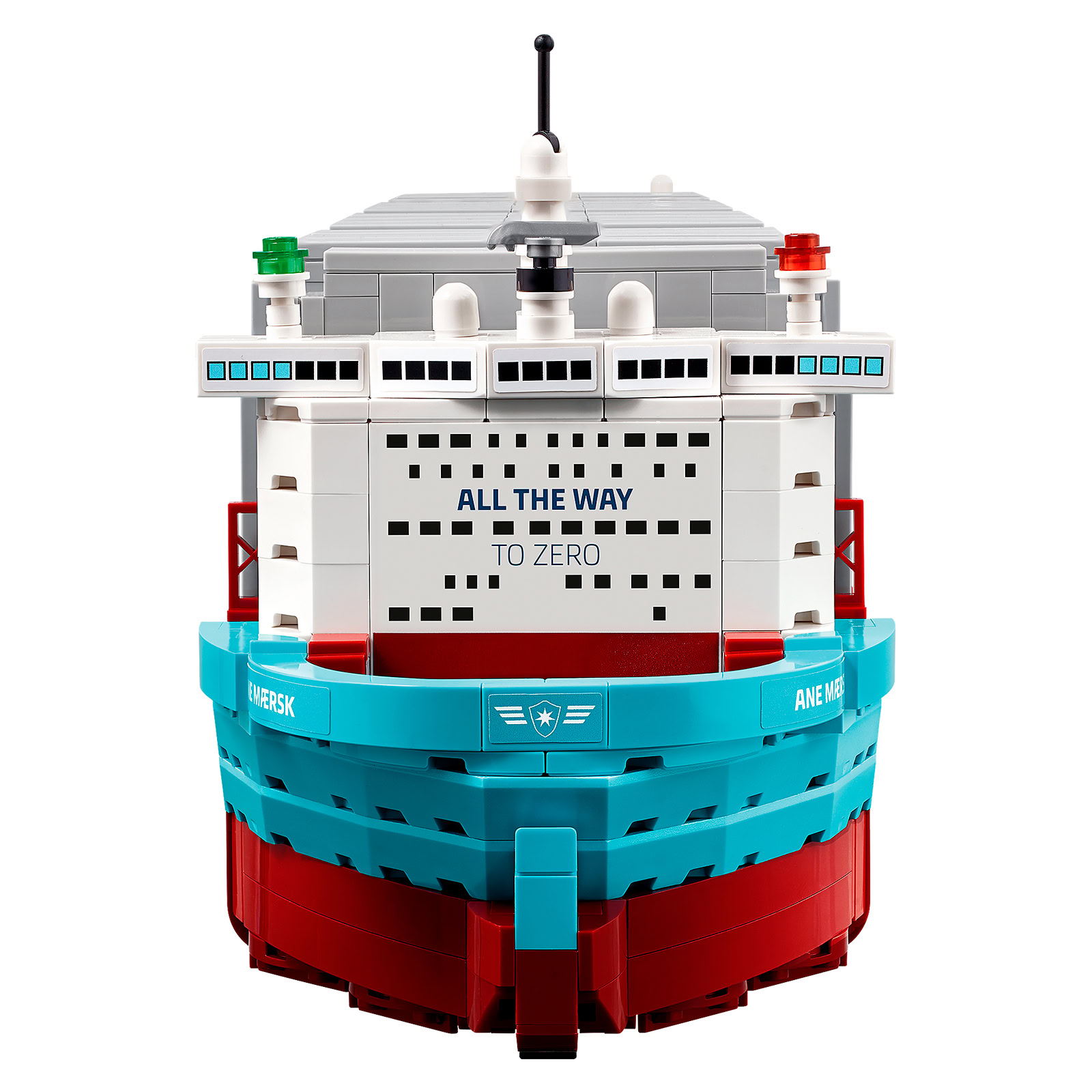 LEGO remet donc le couvert cette année avec une maquette du Ane Maersk, un porte-conteneurs de 350 mètres de long sous pavillon danois dont la propulsion fonctionne au méthanol et qui est le premier d'une série de dix-huit navires du même type.