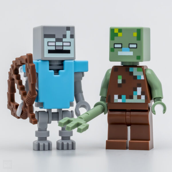 On retiendra la version festive de Steve avec son torse flanqué d'un Golem de Neige, je pense que cette figurine suffira à faire le bonheur des collectionneurs. On notera également que le vagabond fourni ici n'est à ce jour livré sous cette forme que dans le set 21277 The Pickaxe Mine (54,99 €).
