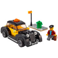 Le véhicule de 6 tenons de large à assembler ici me semble plutôt réussi, même s'il manque à mon avis de quoi entériner définitivement sa fonction de taxi. Un sticker sur les portières aurait par exemple permis d'affirmer de manière plus définitive le rôle de ce véhicule dans les rues de LEGOModularVille. La confusion est également entretenue par la seule et unique minifig livrée dans cette boite, elle est présentée comme un éventuel passager accompagné de sa valise mais LEGO la met également en scène au volant du véhicule. Chauffeur ou passager, on ne sait plus trop. je vous fais grâce du détail du processus de construction, les photos ci-dessous parlent d'elles-mêmes et le tout est assemblé en quelques minutes. Pas de stickers dans cette boite.