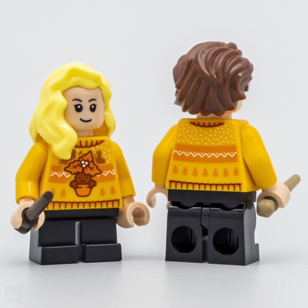 Les huit étudiants sont tous habillés d'un superbe pull moche de Noël aux couleurs de leurs maisons respectives et on retrouve logiquement deux fois chacun des quatre pulls. C'est toujours mieux que des tenues déjà vues et revues dans d'autres sets de la gamme, et ces versions festives resteront facilement intégrables dans une collection de variantes des différents personnages sans trop paraître hors sujet.