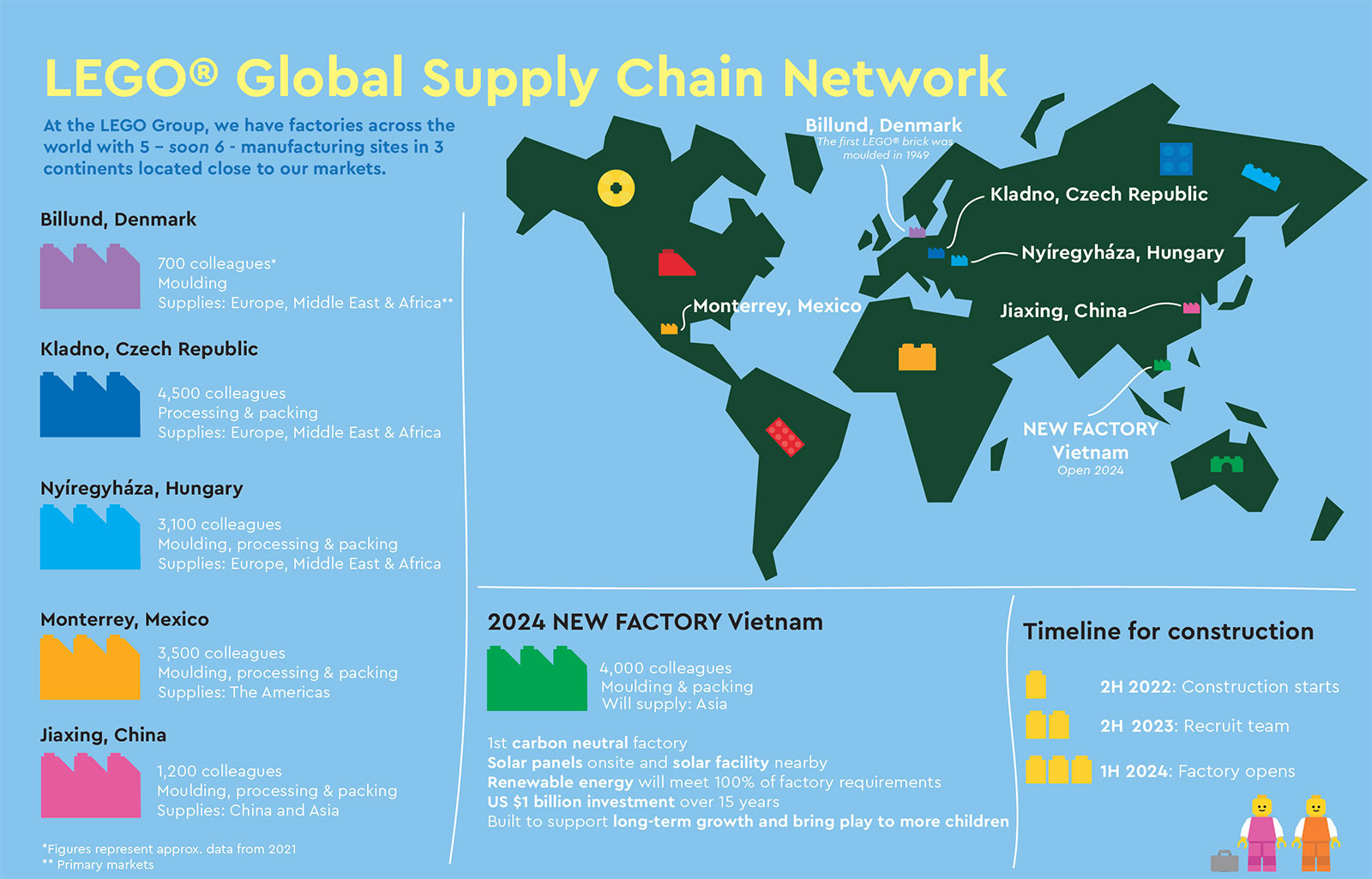 Cette nouvelle usine, la deuxième en Asie après la mise en service en 2016 de celle de Jianxing en Chine, permettra à LEGO de fournir un marché asiatique en croissance constante depuis quelques années.