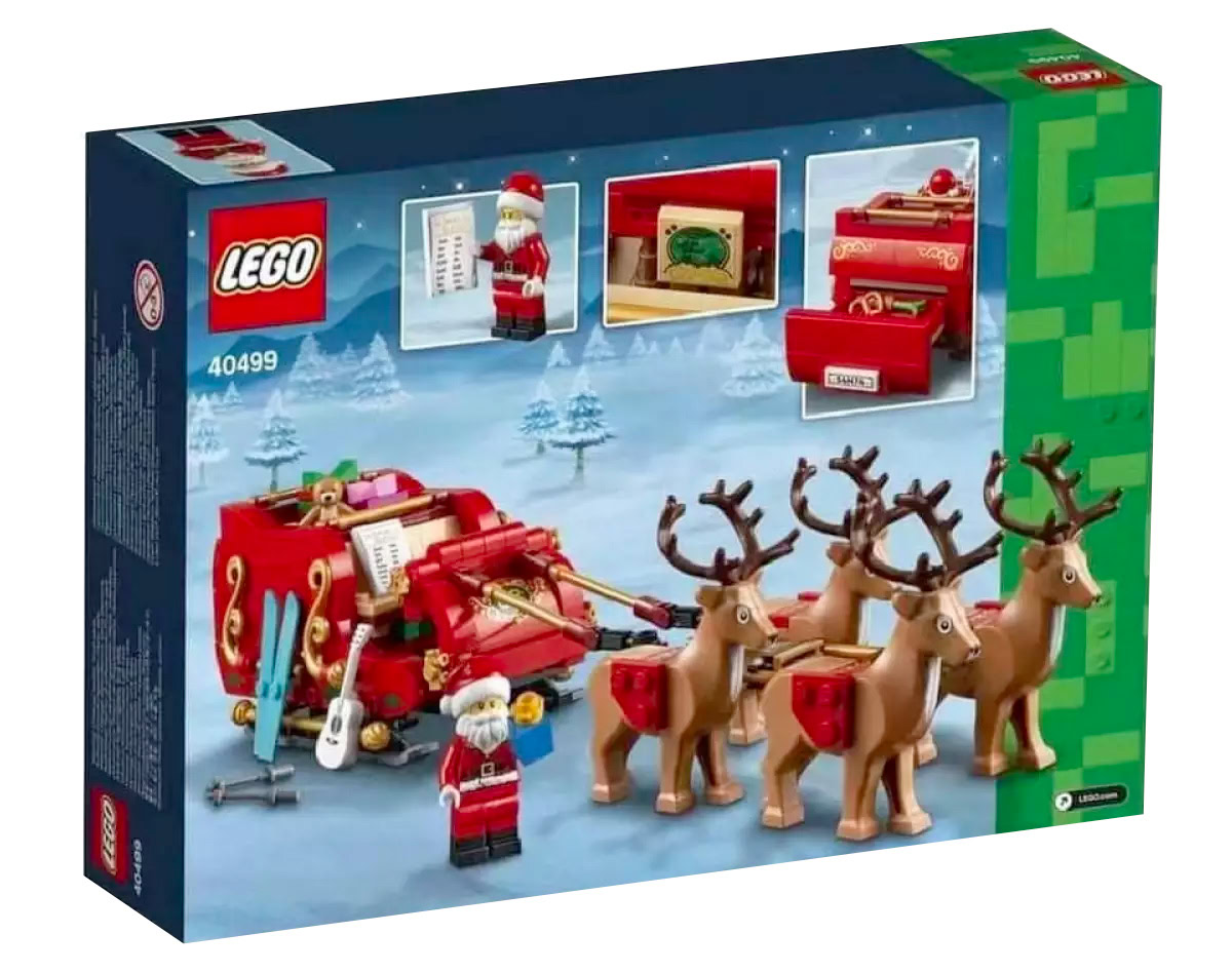 On découvre aujourd'hui une nouveauté LEGO déjà en vente en Chine : le set 40499 Santa's Sleigh avec Santa Claus, son traîneau, ses cadeaux, sa liste d'enfants à récompenser et ses quatre rennes. Ceux qui cherchaient à obtenir plusieurs exemplaires de l'animal déjà vu dans le set 10275 Elf Club House (1197 pièces - 94.99 €) commercialisé depuis 2020 devraient enfin pouvoir le faire sans passer par le marché secondaire.