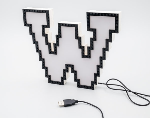 L'enseigne WLWYB, qui propose déjà la très populaire "table périodique des éléments" en version LEGO, tente actuellement quelque chose de nouveau : la mise en vente de lettres à base de briques avec éclairage LED intégré. L'intégralité de l'alphabet est déclinée dans ce format et WLWYB m'a envoyé la lettre W comme Will...