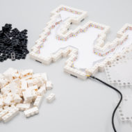 Le produit de 22 cm de haut et d'une largeur variable selon la lettre concernée est constitué de plusieurs rangées de briques LEGO au milieu desquelles sont insérées des feuilles cartonnées qui diffusent et tentent d'uniformiser la lumière générée par le bandeau LED qui circule le long de la structure interne. Les pièces utilisées sont bien des éléments officiels LEGO, elles sont neuves et elles ne sont pas collées entre elles.