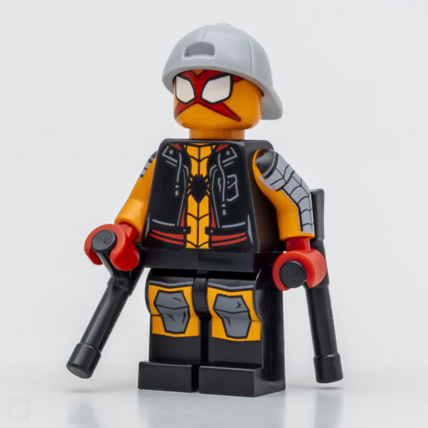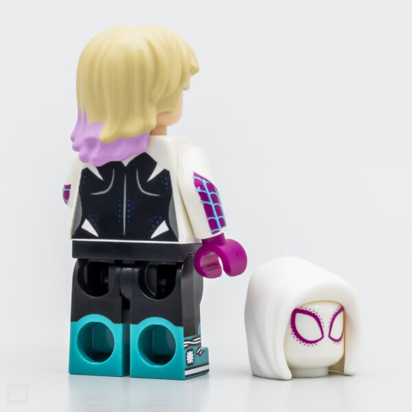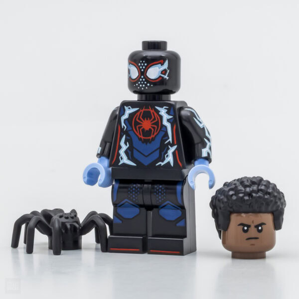 Miles Morales est par exemple plus terne en vrai que les rendus 3D vendus par LEGO tout comme le regard de Sun-Spider, les alignements des motifs sur la face avant des pieds sont parfois un peu hasardeux comme chez Peter Parker avec son porte-bébé, le design des jambes de Cyborg Spider-Woman a changé depuis la publication du visuel de référence avec à l'arrivée un motif très simplifié sur la cuisse droite. Dans l'ensemble, les traits de tampographie sont plus grossiers en vrai que sur les rendus 3D.