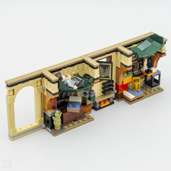 C'est prévu dès le départ, cette petite construction se replie sur elle-même pour venir ensuite se glisser dans les fondations de la construction du set LEGO Harry Potter 76454 Hogwarts Castle: The Main Tower (249,99 €). Même s'il faudra choisir entre la Salle des Clés Volantes fournie dans le set concerné et la Salle sur Demande disponible dans ce petit set car la niche disponible ne peut accueillir qu'un seul module au choix, les collectionneurs les plus exigeants auront sans doute du mal à faire l'impasse sur ce petit set qui fait partie de l'écosystème actuel autour du playset global de Poudlard.
