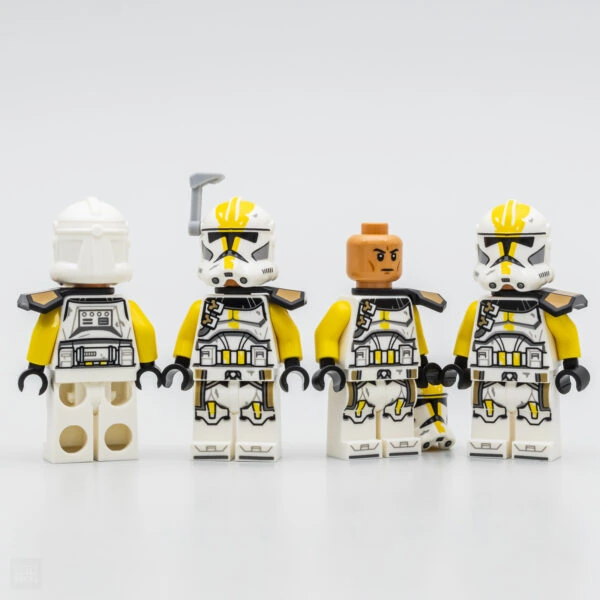 Du côté de la dotation en figurines, on obtient ici quatre exemplaires du Clone Trooper générique et trois exemplaires du Super Battle Droid. Les Clone Troopers sont logiquement tous identiques, à un rangefinder près pour une des quatre minifigs fournies.