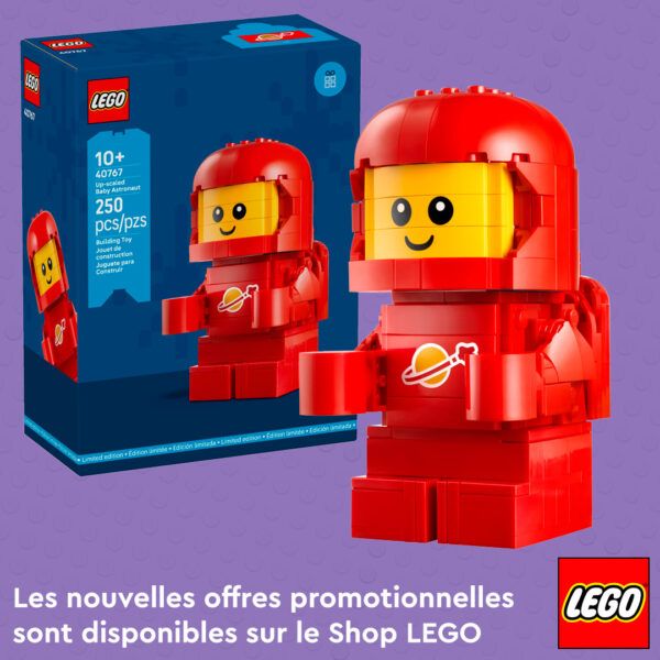 Retour sur la boutique officielle en ligne de l'offre déjà vue en mai 2025 qui permet de se faire offrir un exemplaire du set promotionnel 40767 Up-Scaled Baby Astronaut dès 150 € d'achat sans restriction de gamme.