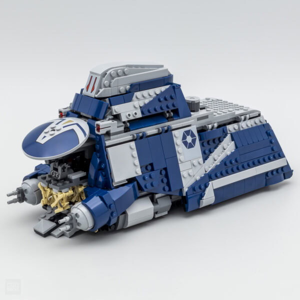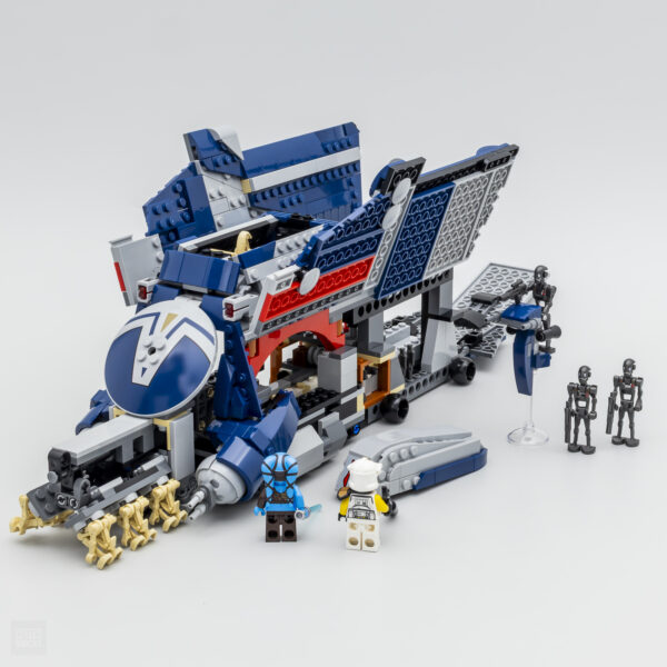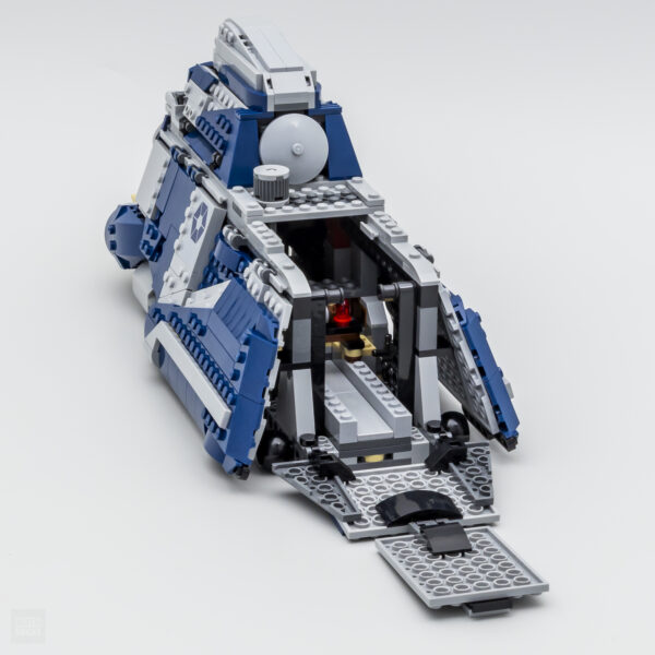 La finition de l'engin est ici plutôt correcte, le mécanisme de déploiement de la rampe de Battle Droids via une molette relativement discrète est intéressant et l'accessibilité de l'intérieur de l'engin est ici maximale avec des panels mobiles sur toutes les faces.