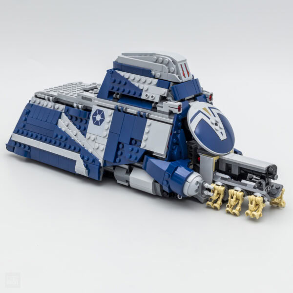 Le MTT est ce qu'on peut appeler un marronnier chez LEGO, le fabricant ayant déjà décliné l'engin en version Episode I dans trois sets par le passé : le set 7184 Trade Federation MMT en 2000, le set 7662 Trade Federation MMT en 2007 et le set 75058 MTT en 2014. Nostalgie mise à part, cette nouvelle version un peu plus compacte dans un coloris séparatiste fait à mon avis mieux que les modèles précédents sur de nombreux points.