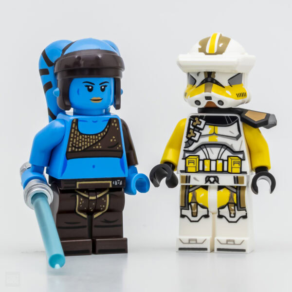 Il nous reste à l'arrivée seulement deux vraies minifigs : Aayla Secura, portée disparue chez LEGO depuis sa dernière apparition dans le set 75182 Republic Fighter Tank en 2017 et Commander Bly. La mise à jour bienvenue de la figurine d'Aayla Secura est franchement réussie avec un niveau de détail très satisfaisant.