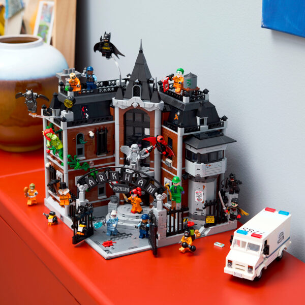 Cette boite de 2953 pièces sera disponible au prix public de 299,99 € et son contenu permettra d'assembler un Modular de l'asile d'Arkham de 25 x 25 cm sur 32 cm de haut. On obtiendra au passage 16 minifigs : Batman, Batwoman, Batwing, Robin, Mr. Freeze, The Riddler, Poison Ivy, Catwoman, Scarecrow, Harley Quinn, Bane, The Joker, The Penguin, Killer Croc et deux agents de sécurité.