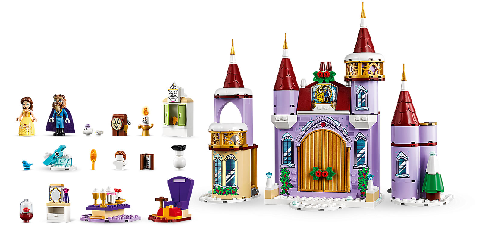 Les jeunes fans de LEGO et de princesses Disney pourront bientôt retrouver l'univers du film d'animation La Belle et la Bête dans le set 43180 Belle's Castle Winter Celebration, une référence 4+ de 238 pièces avec un château à base de (très) grosses pièces et de nombreux accessoires.