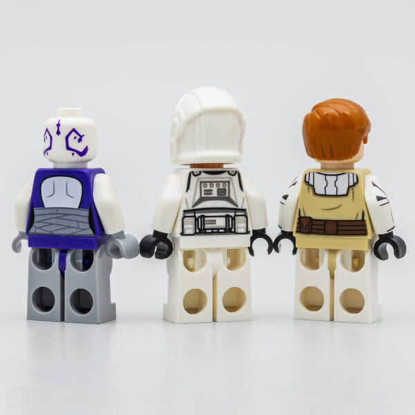 Du côté des trois minifigs fournies, la nouvelle version d'Asajj Ventress est évidemment la bienvenue après les catastrophiques figurines en version The Clone Wars avec leurs gros yeux commercialisées en 2008 et en 2011 et la figurine de 2015 en version Legends. Dommage pour la zone blanche qui devient grise au niveau du torse parce que LEGO se refuse toujours à mettre deux couches d'encre.