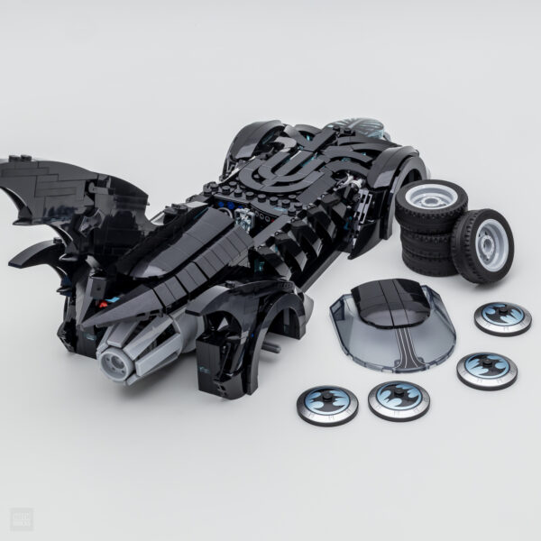 Cette Batmobile n'a plus à l'époque le look habituel de celle vue dans les deux premiers volets de la saga (Batman, Batman Returns) et qui a été immortalisée en 2019 par LEGO dans le set 76139 1989 Batmobile et le look résolument futuriste du véhicule peut laisser certains fans dubitatifs. Le challenge était au passage de taille pour LEGO avec de nombreux détails à reproduire et une allure très originale avec de nombreuses courbes.