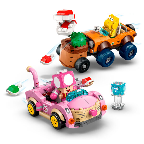 LEGO dévoile aujourd'hui deux nouveautés de la gamme Super Mario qui viendront étoffer le playset Mario Kart dès le 1er août 2025. Comme d'habitude, il sera possible d'utiliser les figurines interactives de Mario, Luigi et Peach disponibles dans leurs Starter Packs respectifs avec ces nouveaux véhicules.