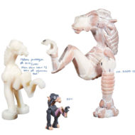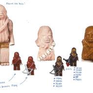 Enfin, LEGO fournit également quelques exemples de sculptures de travail et de prototypes intermédiaires utilisés durant la conception de différents accessoires et figurines de la gamme LEGO Star Wars :