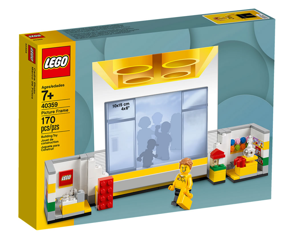Autre nouveauté LEGO dont les visuels officiels sont en ligne, le set 40359 Picture Frame qui semble être un produit promotionnel : il met en scène un mini LEGO Store qui sert de support à un cadre en carton reprenant l'agencement des boutiques officielles dans lequel vient se glisser une photo 10x15cm.