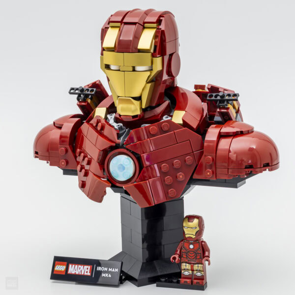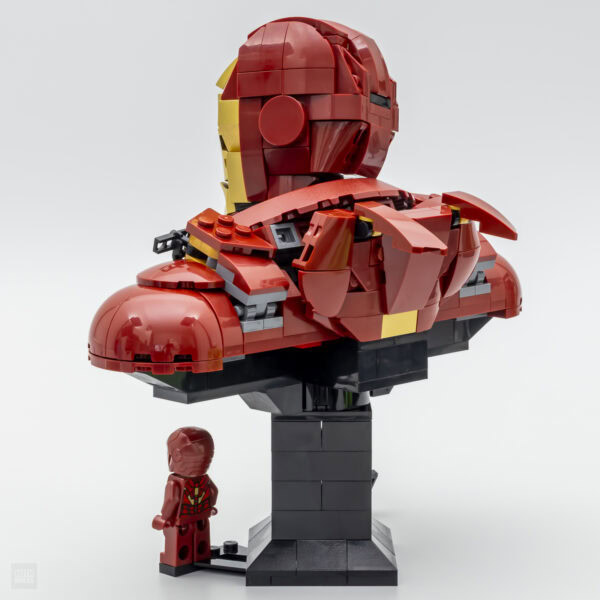 On ne va pas se mentir, la tête d'Iron Man, ici en version MK4, n'est guère plus convaincante que celle du casque vu dans le set 76165 Iron Man Helmet, il y a toujours un problème évident d'expression faciale sur le casque du personnage. On dirait que Tony Stark est triste du résultat et heureusement que le reste de ce que LEGO appelle un buste sauve un peu les meubles.