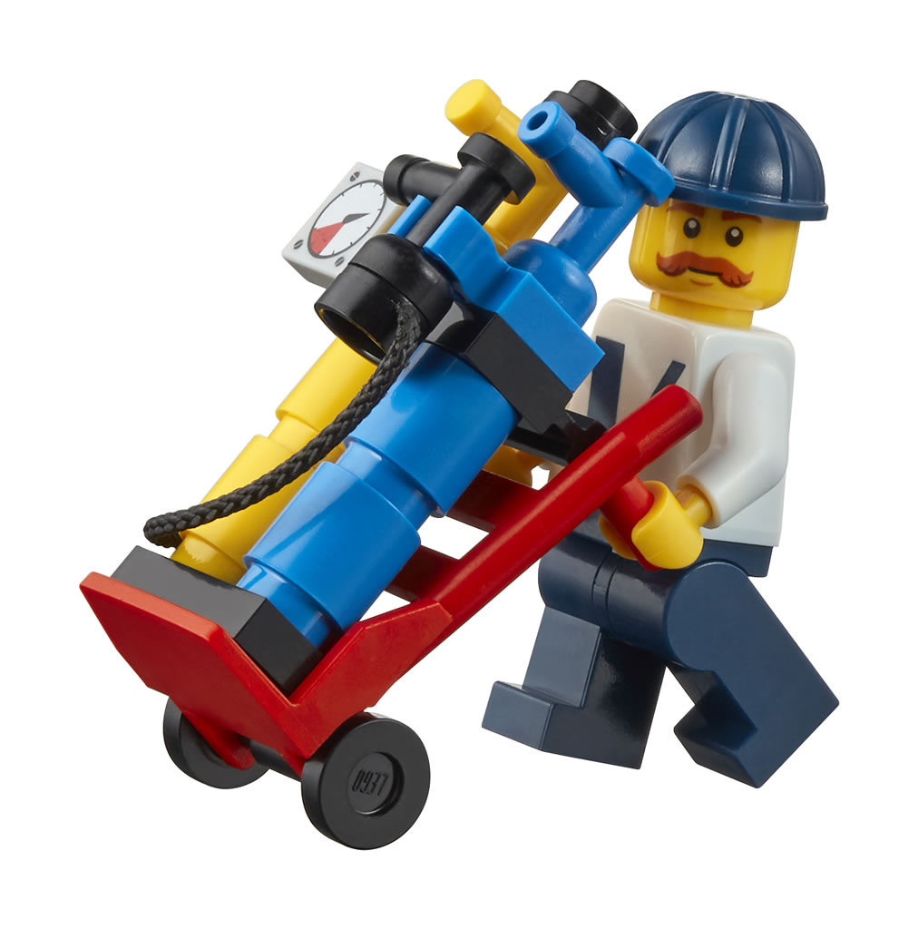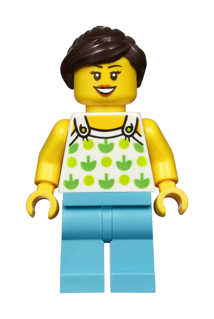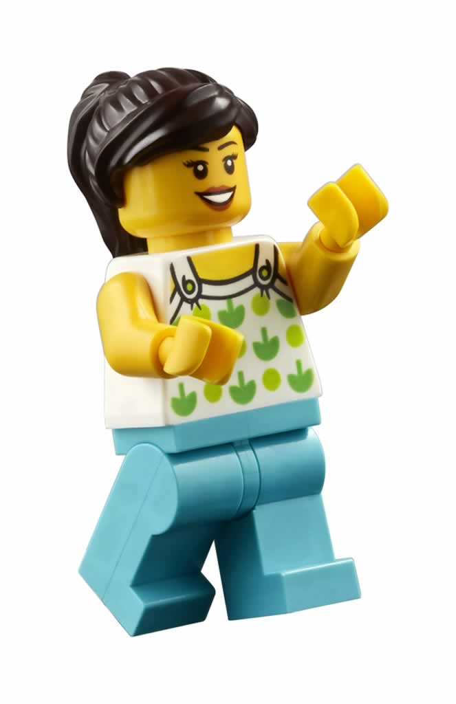 Deux employés de la société Vestas, la propriétaire de la cabane et son chien sont fournis. On notera que les minifig des employés de Vestas fournies avec le set 4999 étaient alors habillées de stickers sur le torse. Celles de 2018 seront évidemment tampographiées.