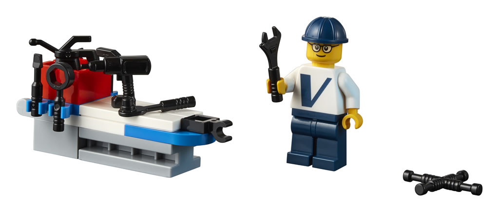 Les cabines latérales sont constituées de grosses pièces mobiles qui favorisent la jouabilité mais qui ne font pas vraiment honneur au concept de jeu de construction vanté par LEGO. L'ensemble est d'ailleurs assemblé en une trentaine de minutes, le plus laborieux étant le montage de l'aileron central qui est constitué d'un empilage de pièces maintenu par un axe Technic et quelques pins.