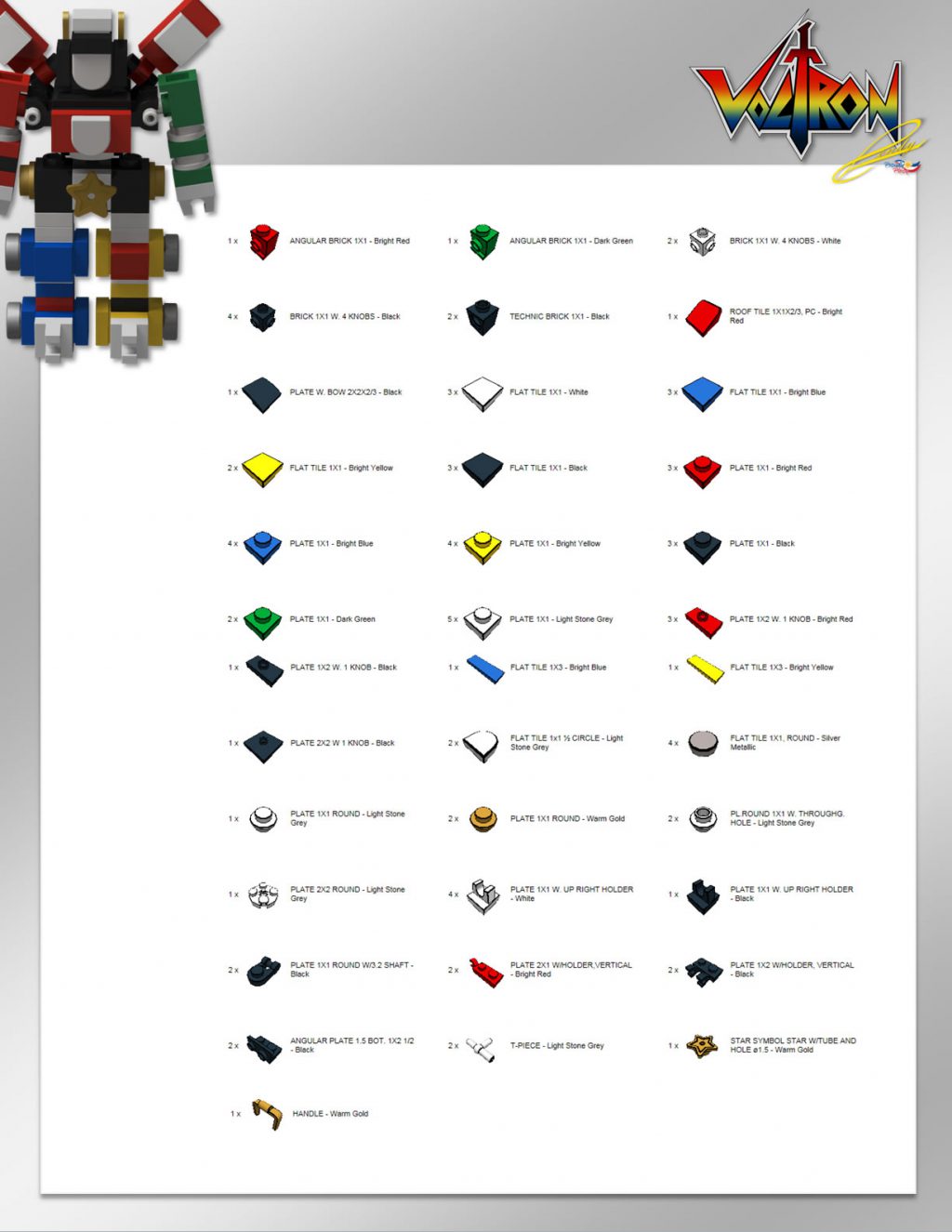 Vous aimez les robots colorés mais vous n'avez pas envie de dépenser 199.99 € dans le set LEGO IDEAS 21311 Voltron ? Leandro Tayag, le créateur du projet original dont le set est inspiré, a pensé à vous avec une version micro de 80 pièces du robot dont il met les instructions et l'inventaire à disposition via sa page facebook et que vous pouvez donc assembler à moindres frais.