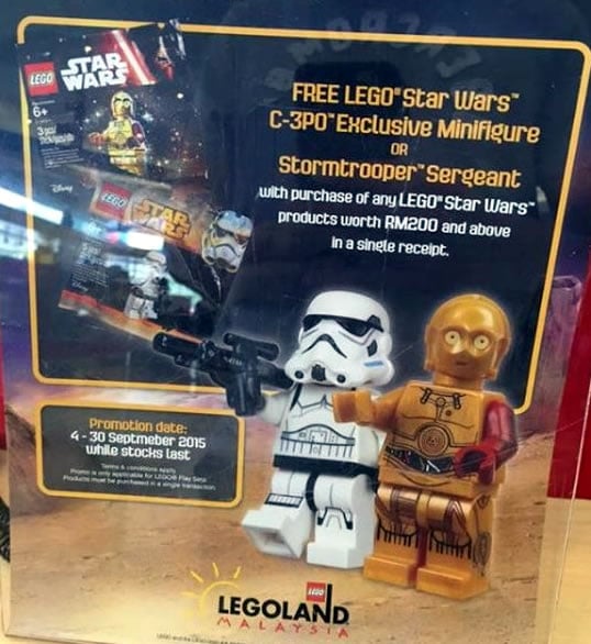 J'ai une bonne et une mauvaise nouvelle : Je commence par la bonne : LEGO offrira quelque chose sur le LEGO Shop les 4 et 5 septembre prochains à l'occasion du Force Friday, jour du lancement planétaire des produits dérivés du film Star Wars : The Force Awakens.