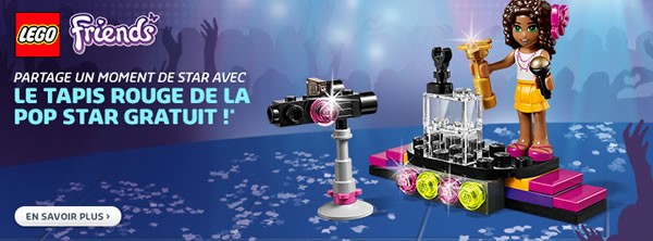 Cette nouvelle offre est cumulable avec celle, manifestement non limitée aux gammes Friends, Elves et Disney Princess, qui permet d'obtenir le polybag Friends 30205 Pop Star Red Carpet à partir de 30 € d'achat.