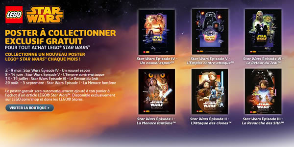 Note : Le prochain poster LEGO Star Wars sera offert du 24 au 30 août prochain sur le LEGO Shop. Il s'agit de celui de l'Episode I (calendrier disponible à cette adresse).