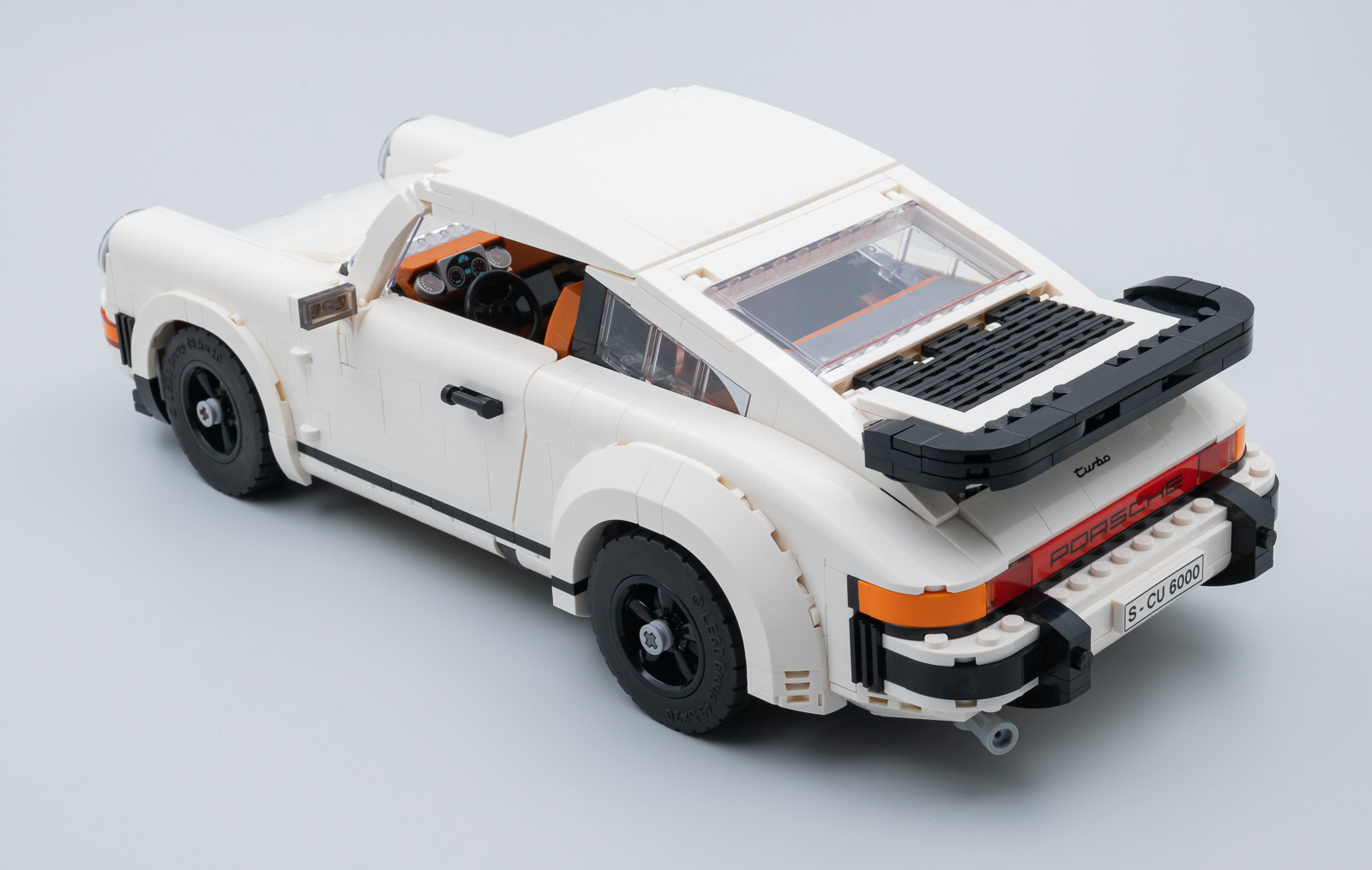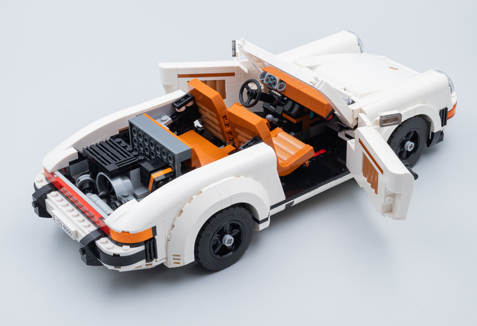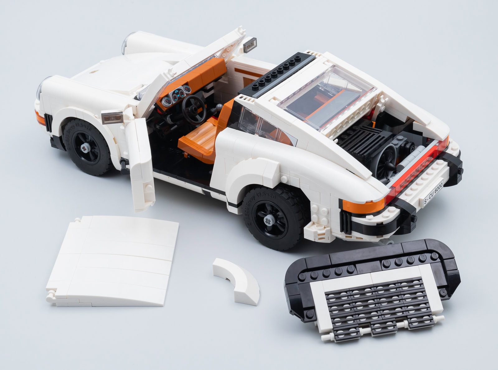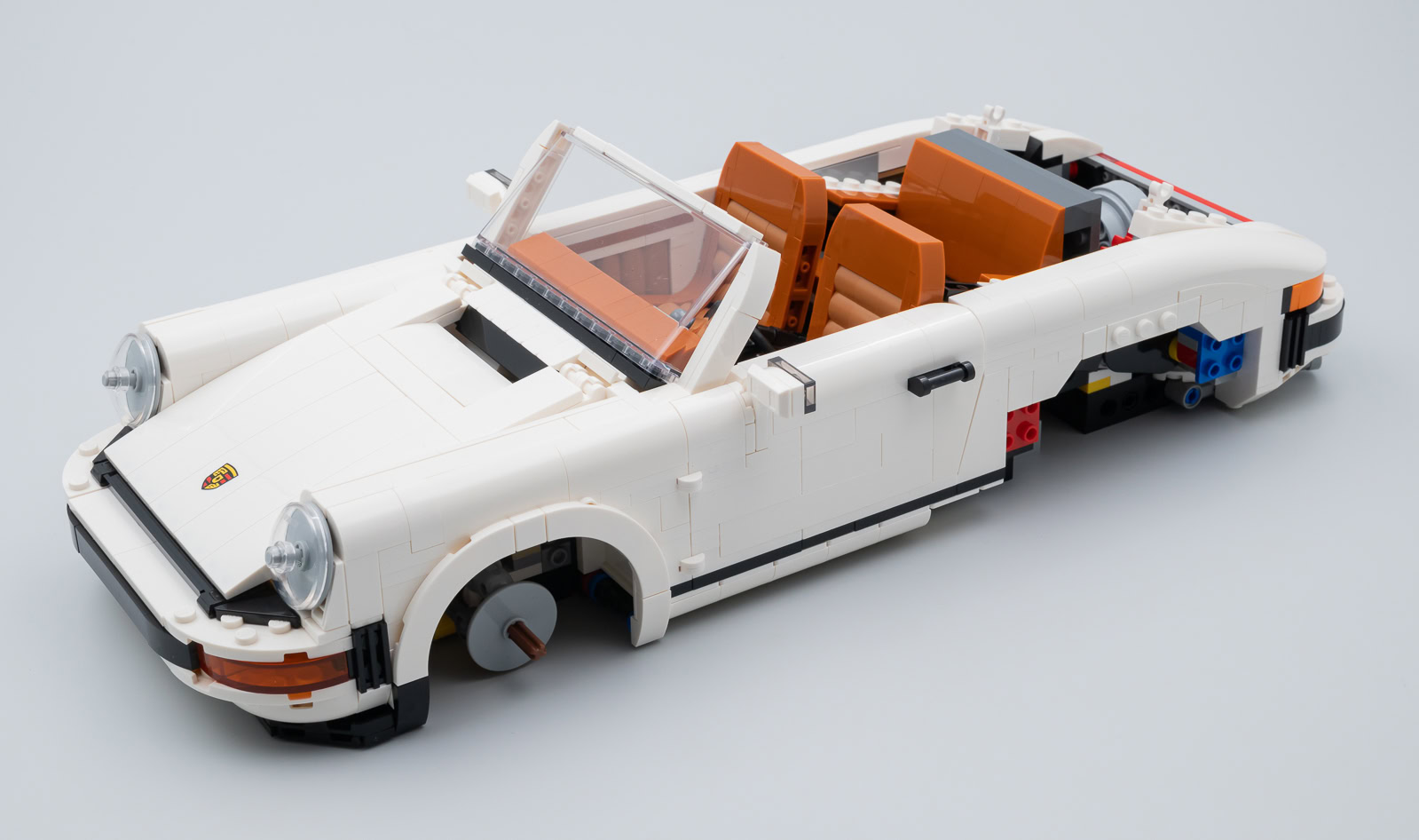 Lors d'un premier assemblage, tout roule. Le plancher à base d'éléments Technic, la sellerie très réussie avec des sièges avant qui basculent pour permettre l'accès à la banquette arrière, l'habillage intérieur Dark Orange et Nougat avec son tableau de bord un peu minimaliste, les portières massives mais bien conçues, les éléments mécaniques et une partie de la carrosserie sont assemblés et il suffit ensuite de se décider pour la version Turbo ou Targa et de suivre les indications fournies dans le livret d'instructions.