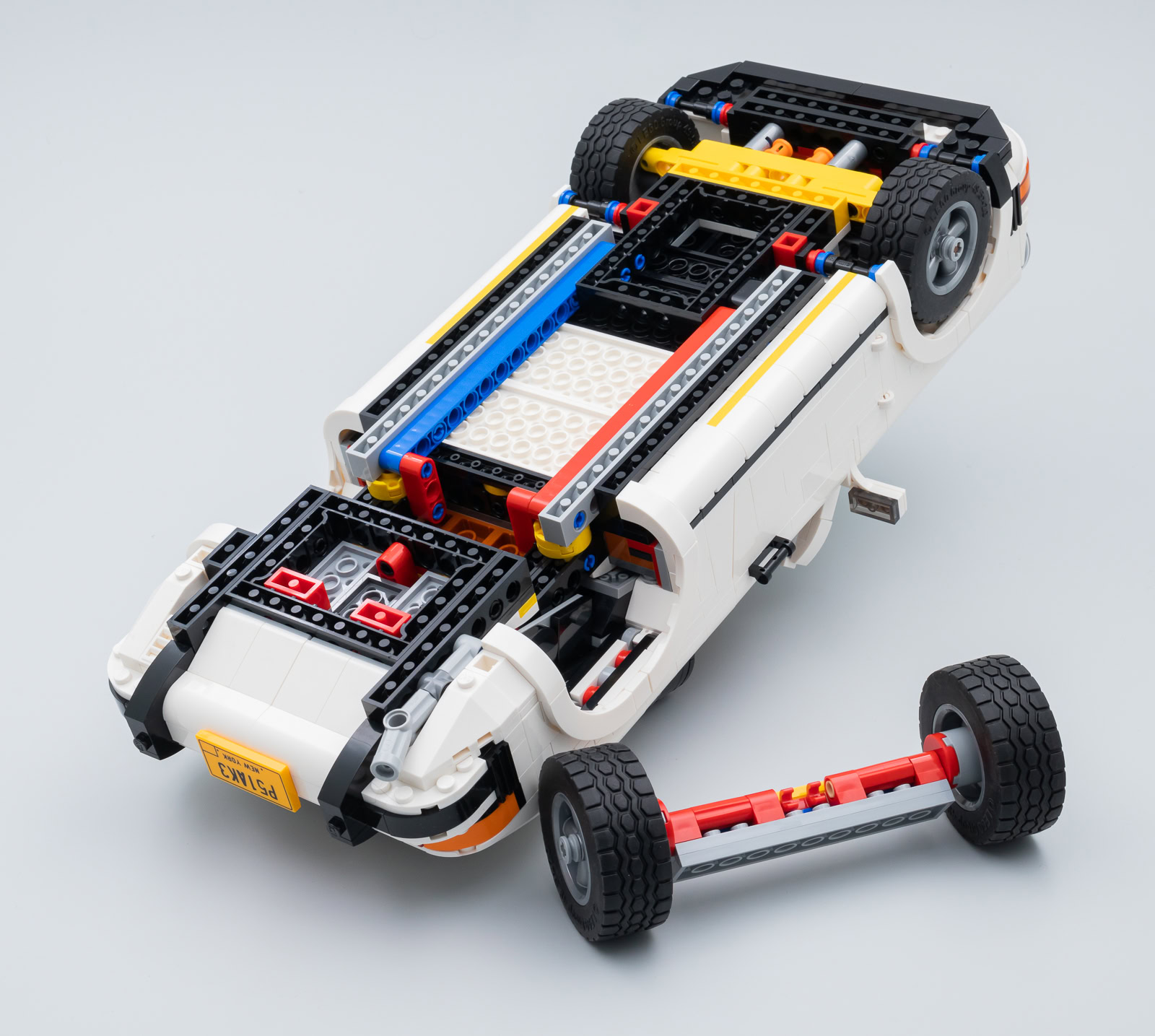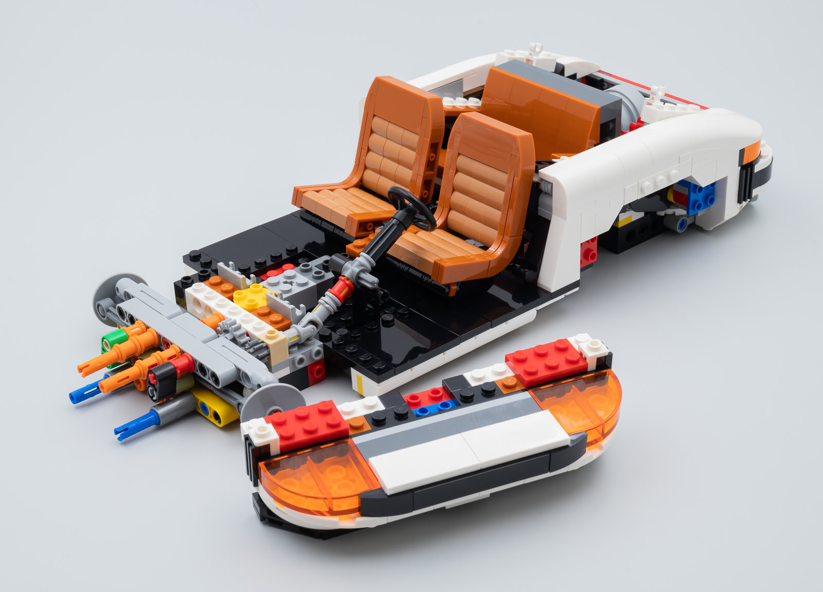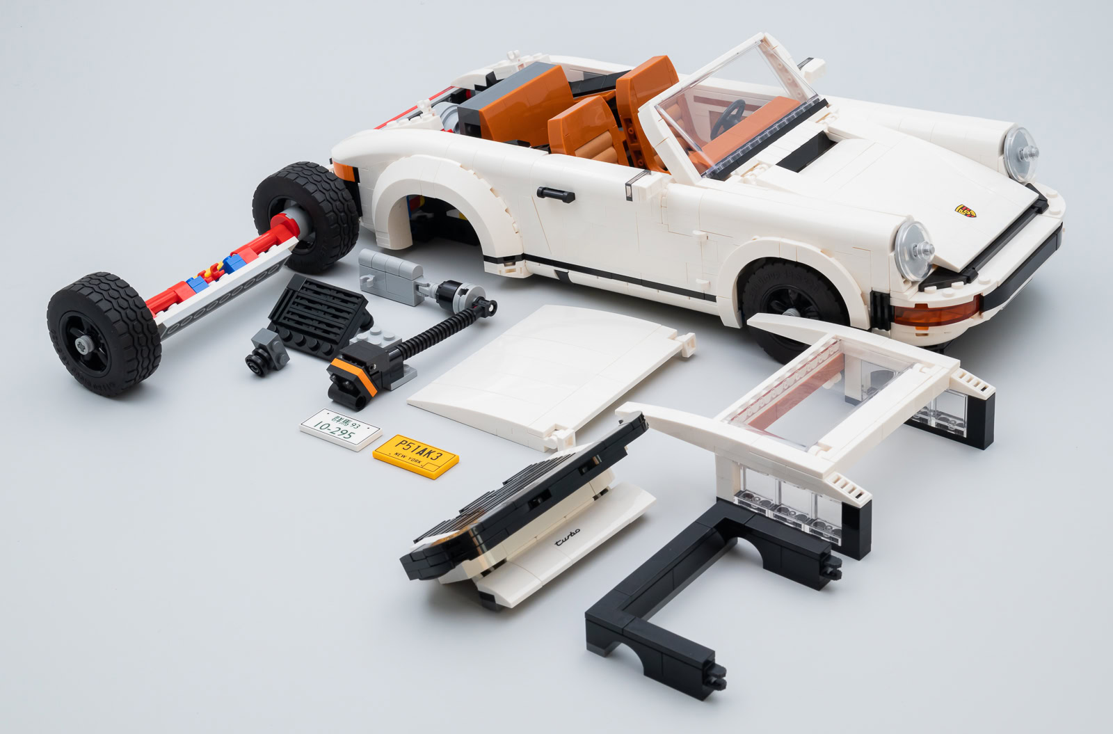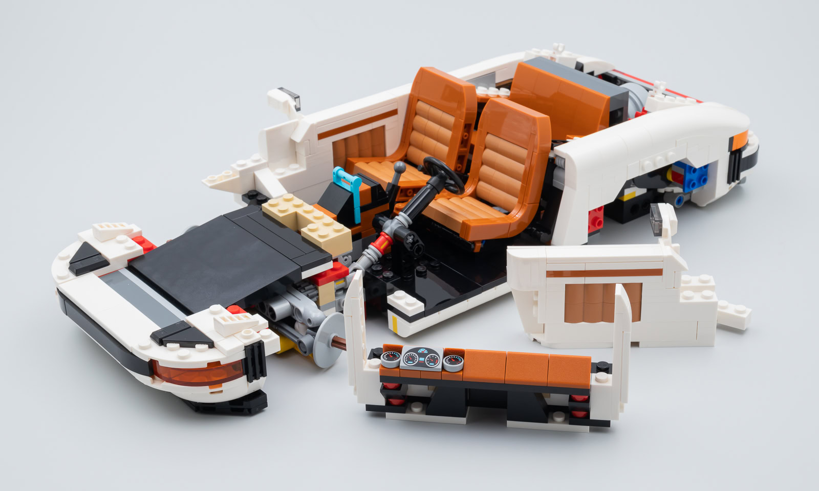 Lors d'un premier assemblage, tout roule. Le plancher à base d'éléments Technic, la sellerie très réussie avec des sièges avant qui basculent pour permettre l'accès à la banquette arrière, l'habillage intérieur Dark Orange et Nougat avec son tableau de bord un peu minimaliste, les portières massives mais bien conçues, les éléments mécaniques et une partie de la carrosserie sont assemblés et il suffit ensuite de se décider pour la version Turbo ou Targa et de suivre les indications fournies dans le livret d'instructions.