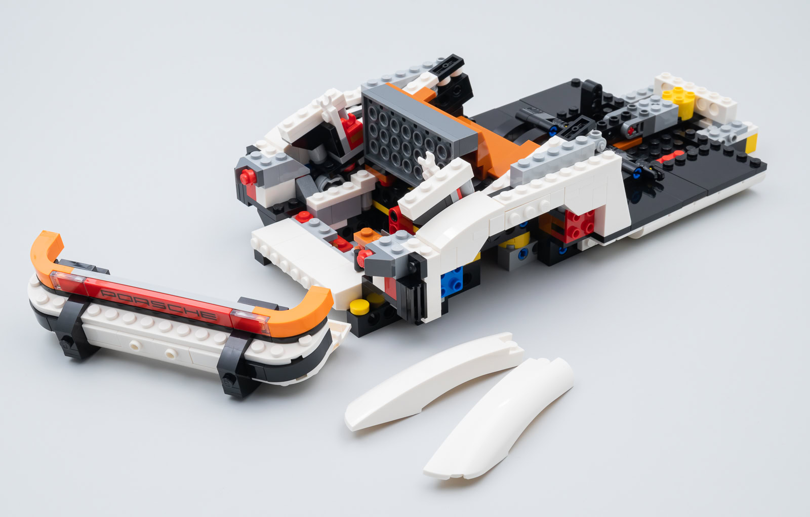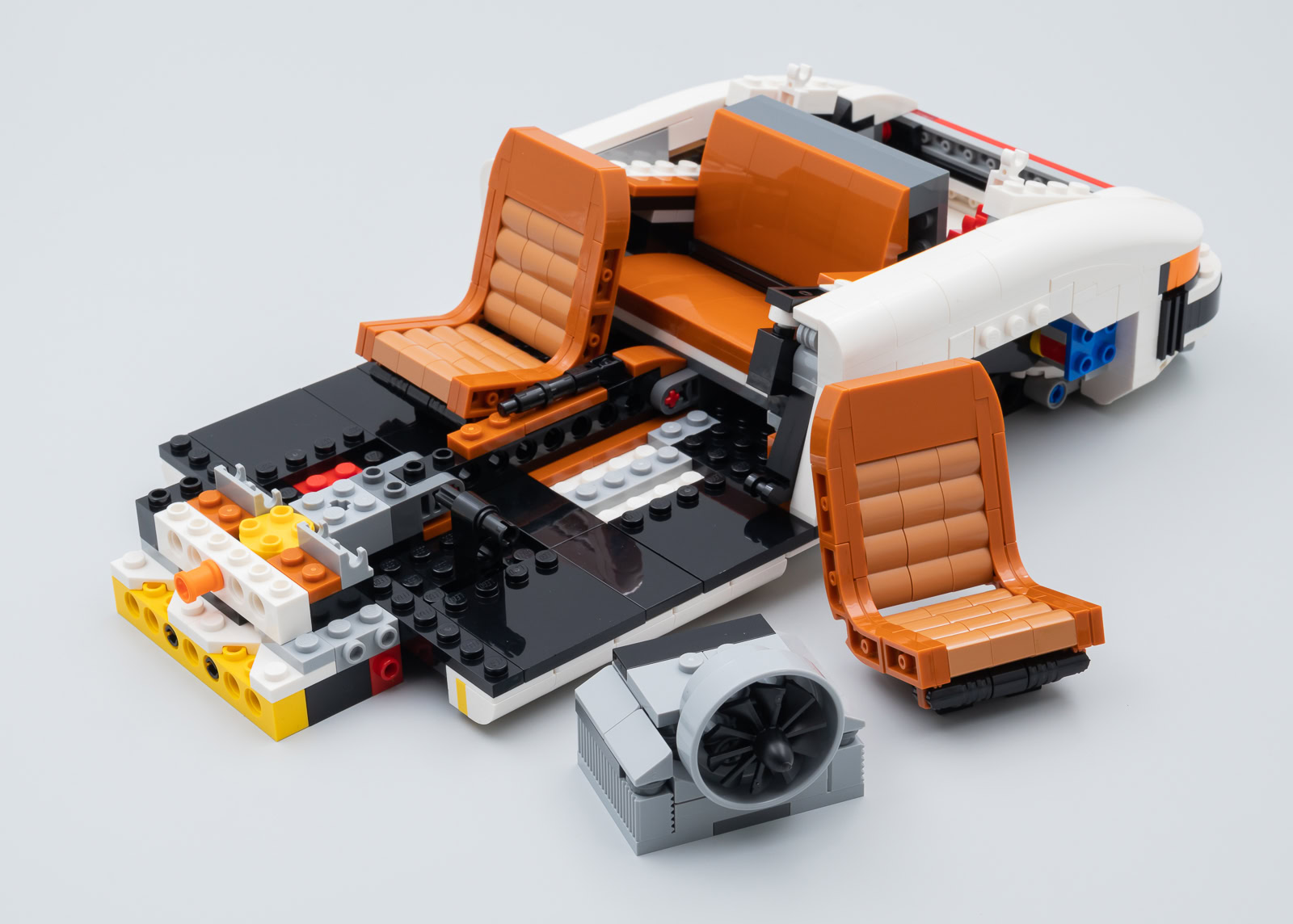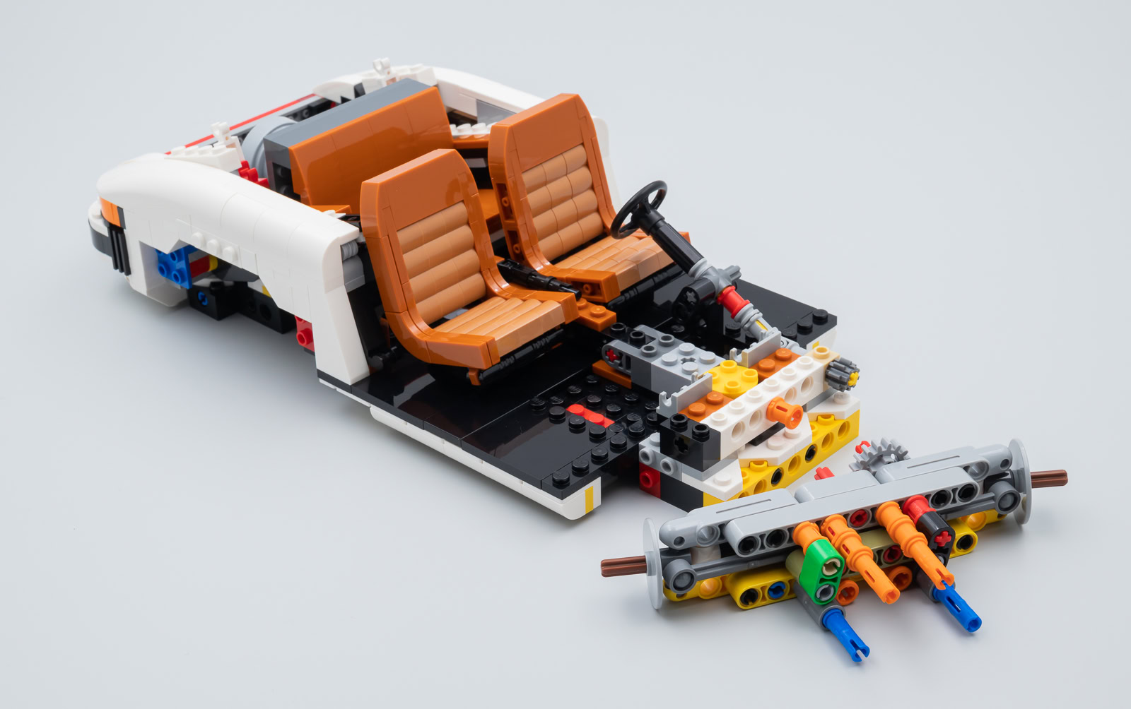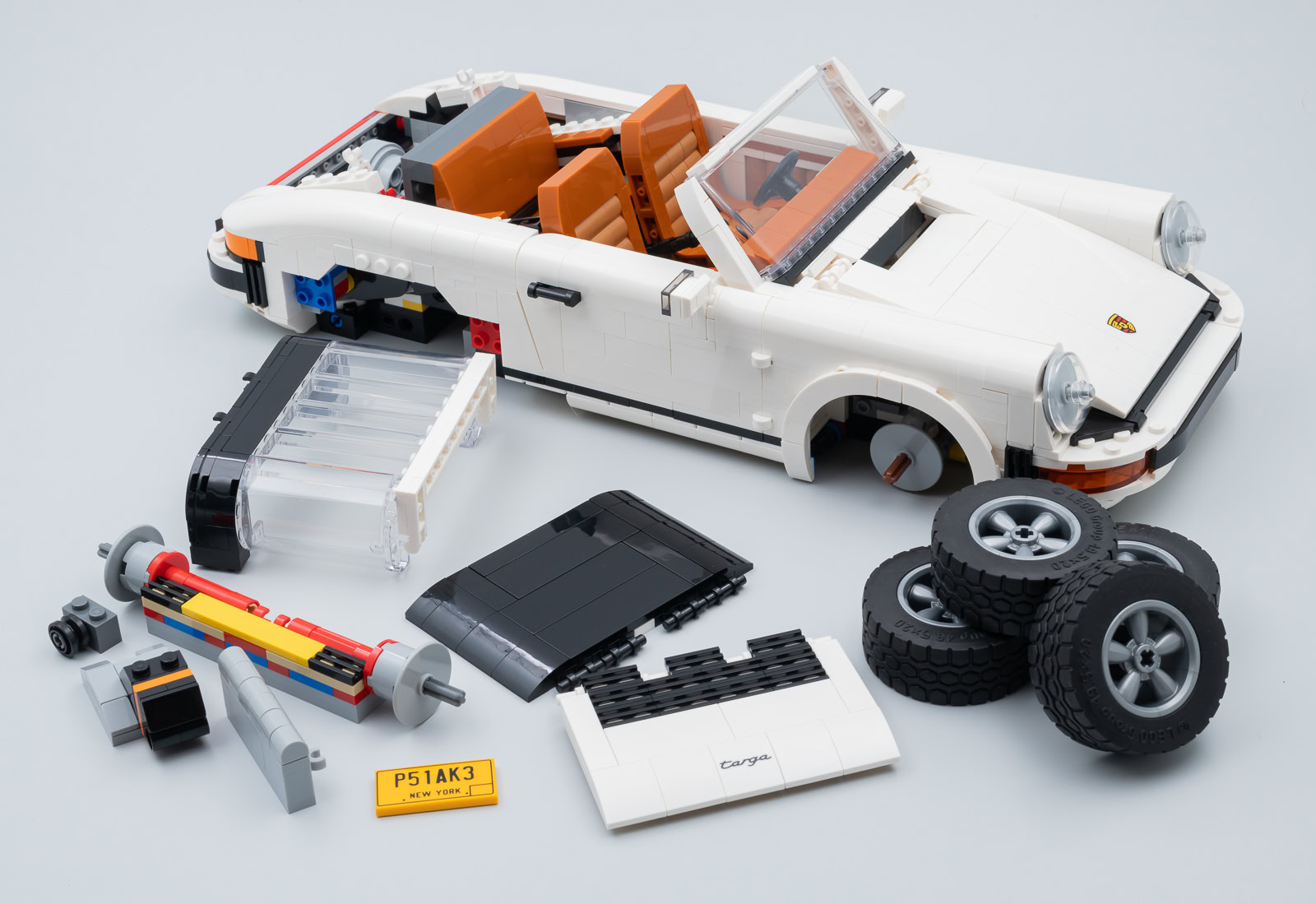 Lors d'un premier assemblage, tout roule. Le plancher à base d'éléments Technic, la sellerie très réussie avec des sièges avant qui basculent pour permettre l'accès à la banquette arrière, l'habillage intérieur Dark Orange et Nougat avec son tableau de bord un peu minimaliste, les portières massives mais bien conçues, les éléments mécaniques et une partie de la carrosserie sont assemblés et il suffit ensuite de se décider pour la version Turbo ou Targa et de suivre les indications fournies dans le livret d'instructions.