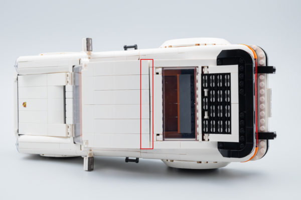 En marge des défauts habituels auxquels on finirait presque par s'habituer, comme les écarts de teinte ou les pièces transparentes rayées, il y a ici un problème un peu plus agaçant : sur la version 911 Turbo, l'arrière du toit blanc repose sur une série de tenons noirs et ces derniers sont visibles par transparence. L'effet n'est pas trop perturbant sur la photo ci-dessus mais il est plus ou moins présent selon l'angle et l'éclairage.