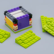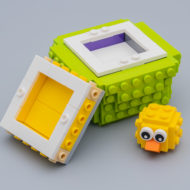 La construction se divise en trois modules avec la partie inférieure de la coquille, une zone intermédiaire amovible et le couvercle. Rien de très compliqué en matière de techniques d'assemblage, c'est simple et répétitif. L'effet DOTS se fait sentir ici aussi avec de nombreuses petites pièces à aligner pour décorer la coquille et tout un lot de pièces supplémentaires qui a pour vocation de venir combler l'espace interne inférieur, le blanc de l'œuf. On assemble aussi un petit poussin aux yeux de Mixel qui trouve logiquement sa place dans le jaune de l'œuf.