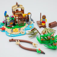La minifig du naufragé réutilise un torse lancé en 2020 dans le set LEGO IDEAS 21322 Pirates of Barracuda Bay, les jambes de Flash injectées en deux couleurs et une tête très courante qui permet de simuler l'arrivée de Ray avec sa barbe naissante avant de lui ajouter l'accessoire fourni qui témoigne de longs mois passés sur cette île déserte.