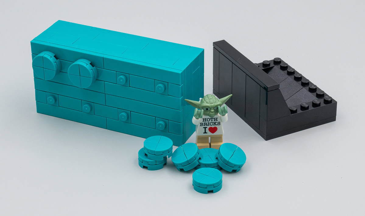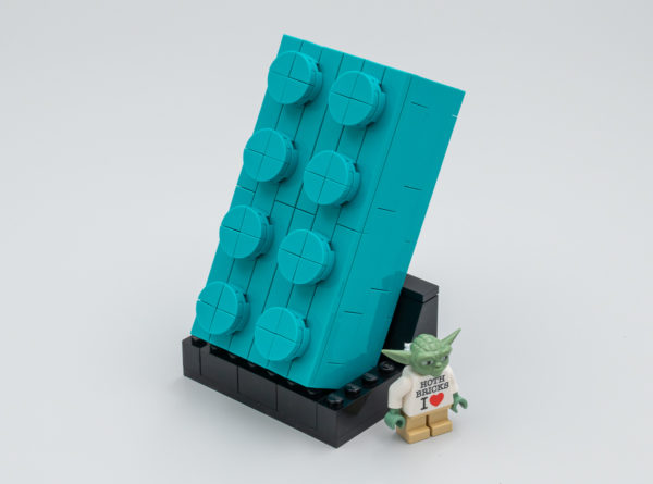 Comme LEGO fait plutôt bien les choses, cette nouvelle brique couleur bleu canard (Teal) est différente de la rouge offerte l'an dernier. le résultat est le même, une brique 2x4 sur un support noir, mais le processus de construction de la brique est différent.