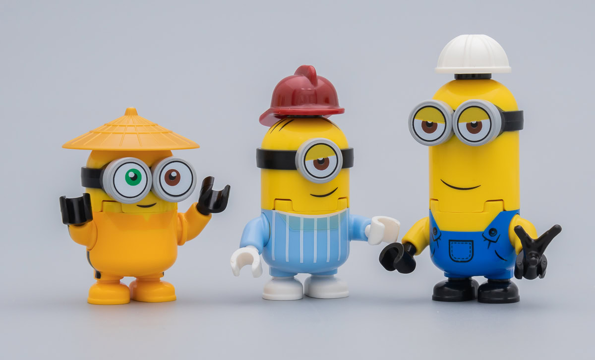Certains y verront une interprétation des personnages qui s'éloigne un peu trop du format minifig habituel là où d'autres considéreront qu'il était difficile de faire autrement pour obtenir des versions crédibles des Minions. C'est à chacun de voir où il place le curseur. Pour ma part, je trouve que ces trois Minions sont le fruit d'un bon compromis entre l'ADN LEGO, ses pièces à assembler et ses tenons et la nécessité de s'adapter pour proposer des versions crédibles des personnages.