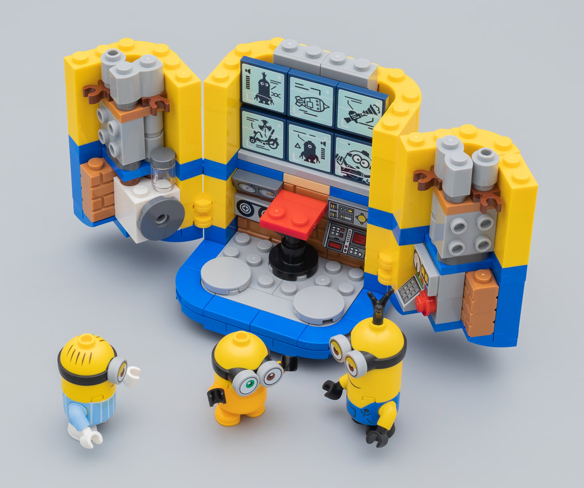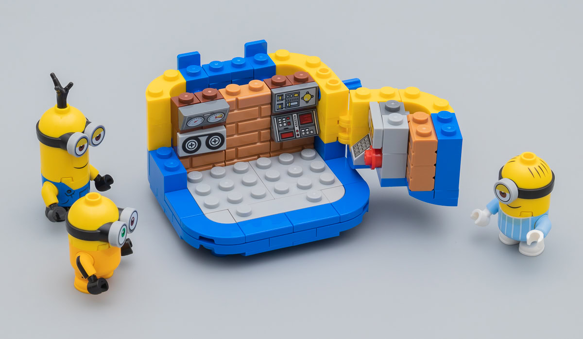 Chacun des espaces intérieurs, accessible en ouvrant le corps du Minion depuis l'arrière de la figurine, regorge de détails, de références et d'accessoires que les fans apprécieront forcément. C'est détaillé, bien agencé et les plus jeunes y trouveront sans doute de quoi s'amuser un peu. LEGO n'a pas oublié de fournir des mini-figurines des trois personnages à construire pour rendre les espaces intérieurs un peu plus interactifs.