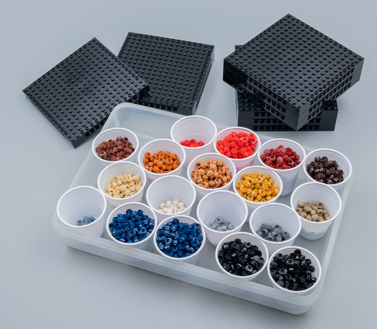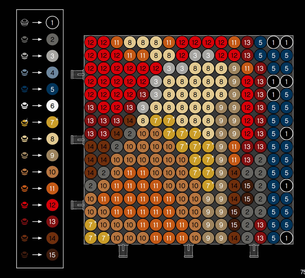 Chacun aura un avis sur la pertinence du concept, et ce que j'en retiens à titre personnel au bout de trois heures d'assemblage divisées en quatre sessions, c'est qu'on s'ennuie un peu. Il faut aussi rester attentif pour ne pas confondre quelques teintes entre elles, mais une fois qu'on a visuellement associé la couleur présente dans les pages du livret avec la teinte correspondante, le travail à la chaîne se déroule sans accroc. Si vous voulez un peu plus vous simplifier la tâche et vous débarrasser encore plus rapidement de la phase de montage, vous pouvez numéroter les gobelets contenant chaque teinte une bonne fois pour toutes en respectant le tableau fourni par LEGO.