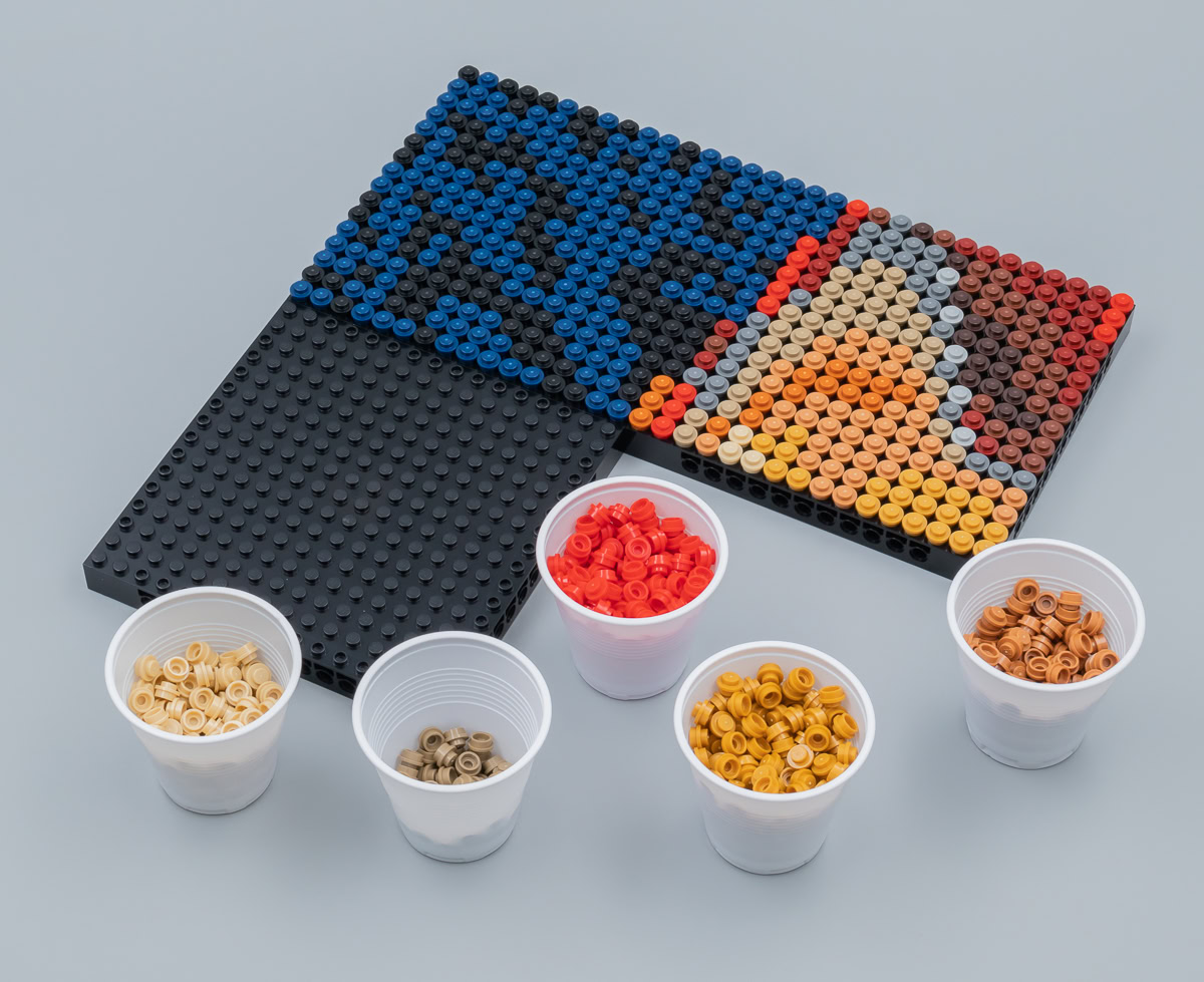 Pour avoir entièrement démonté l'exemplaire fourni par LEGO, c'est une étape laborieuse même avec l'aide du nouveau séparateur sous stéroïdes fourni qui permet d'enlever quatre pièces à la fois au lieu de deux. Et si vous voulez vous lancer dans l'assemblage d'un second visuel, il vous faudra au moins a préalable retrier plusieurs milliers de pièces dont les coloris sont très proches.