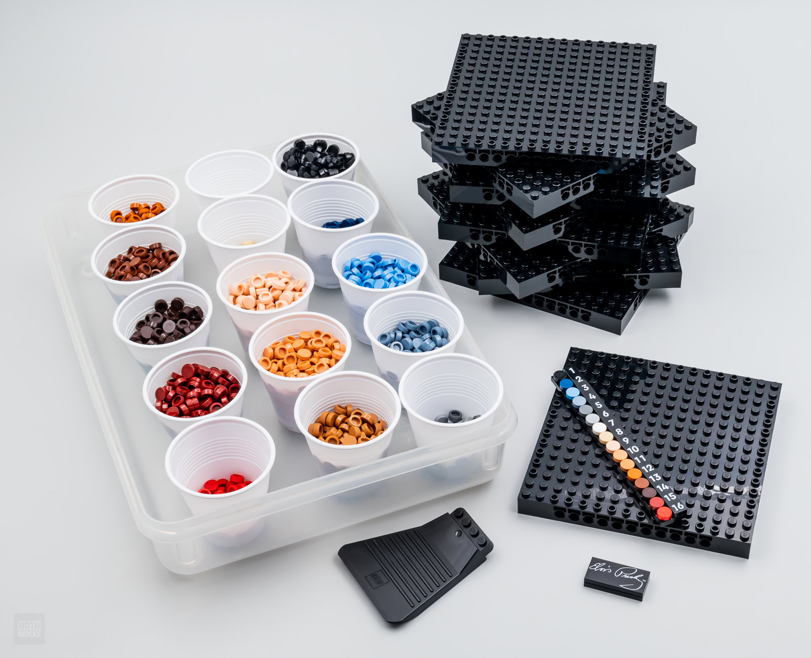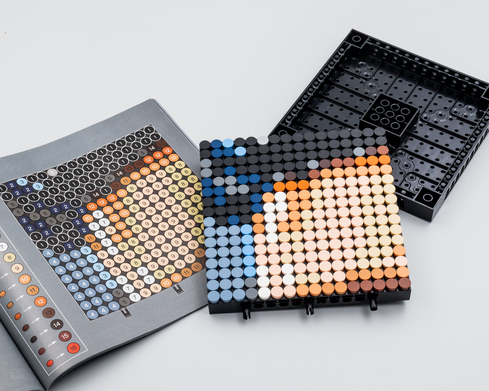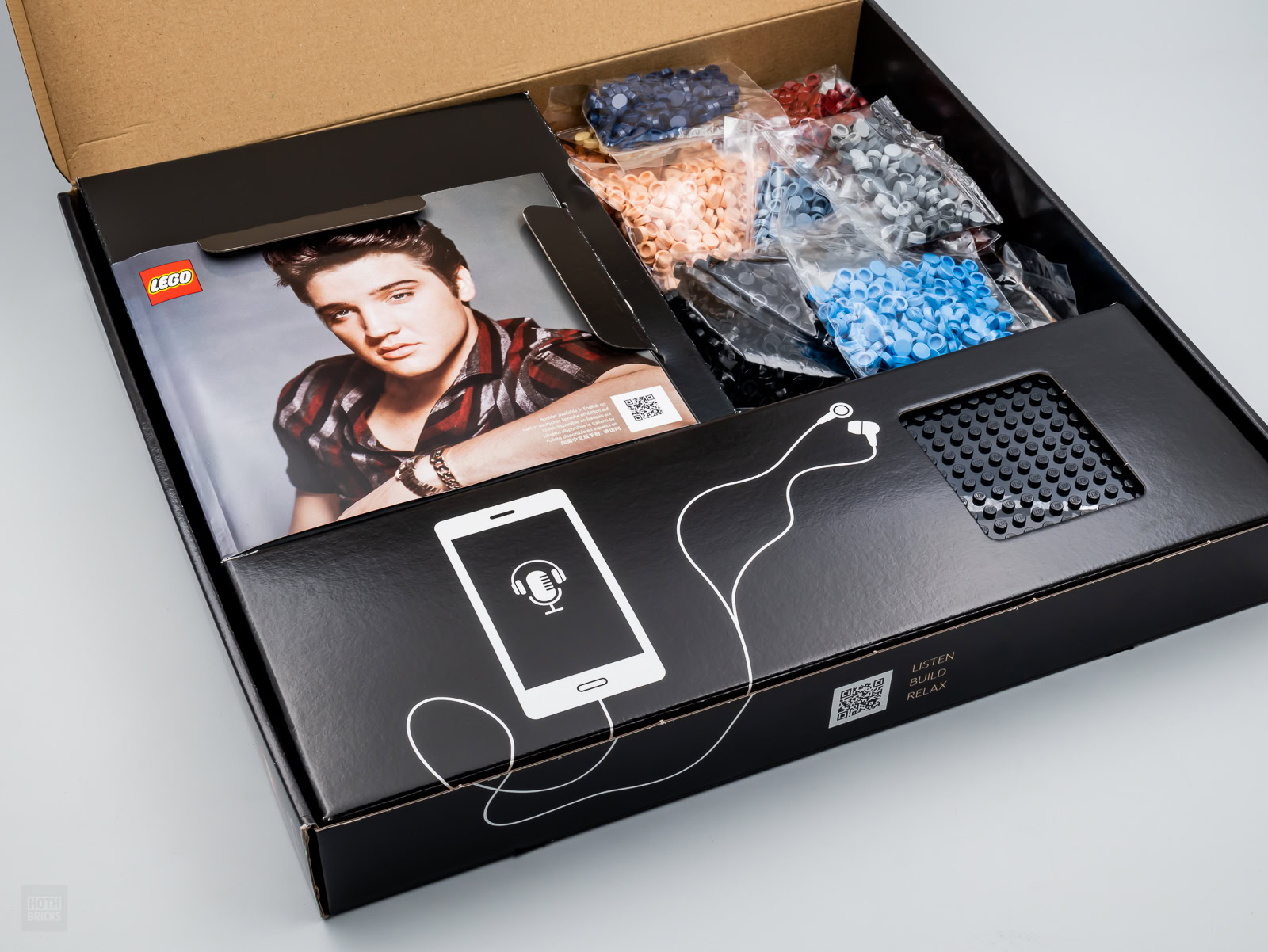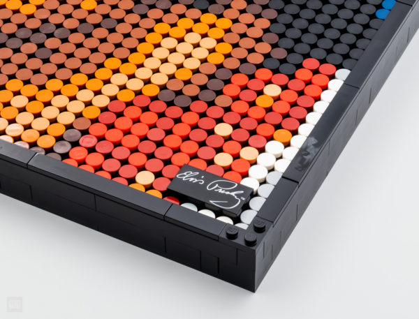 La recette est ici exactement la même que pour les autres références de la gamme LEGO ART : les neuf plaques 16x16 qui servent de support à l'œuvre sont reliées entre elles par quelques pins et il suffit de suivre attentivement les indications du livret d'instructions pour assembler le modèle choisi. Quelques pièces viennent ensuite habiller le résultat avec une bordure noire qui fait office de cadre. Le visuel est enfin rehaussé d'une signature du chanteur, vous pouvez aussi ne pas la mettre et les pièces nécessaires pour boucher le trou sont fournies.