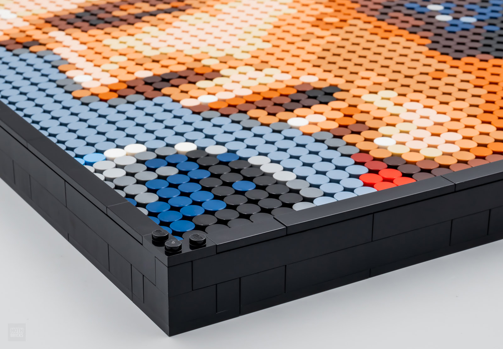 Pour ceux qui se poseraient la question, chaque mosaïque est d'une solidité à toute épreuve une fois assemblée, les pins Technic assurent un premier niveau de connexion aux neufs modules, le tout est renforcé par la présence des pièces grises placées au dos du modèle et l'ensemble est totalement sécurisé par la mise en place de l'encadrement du tableau avec des tiles qui chevauchent les montants. Les Tiles restent nues en face avant, il faudra faire la poussière régulièrement ou tenter d'ajouter un insert en plexiglass.