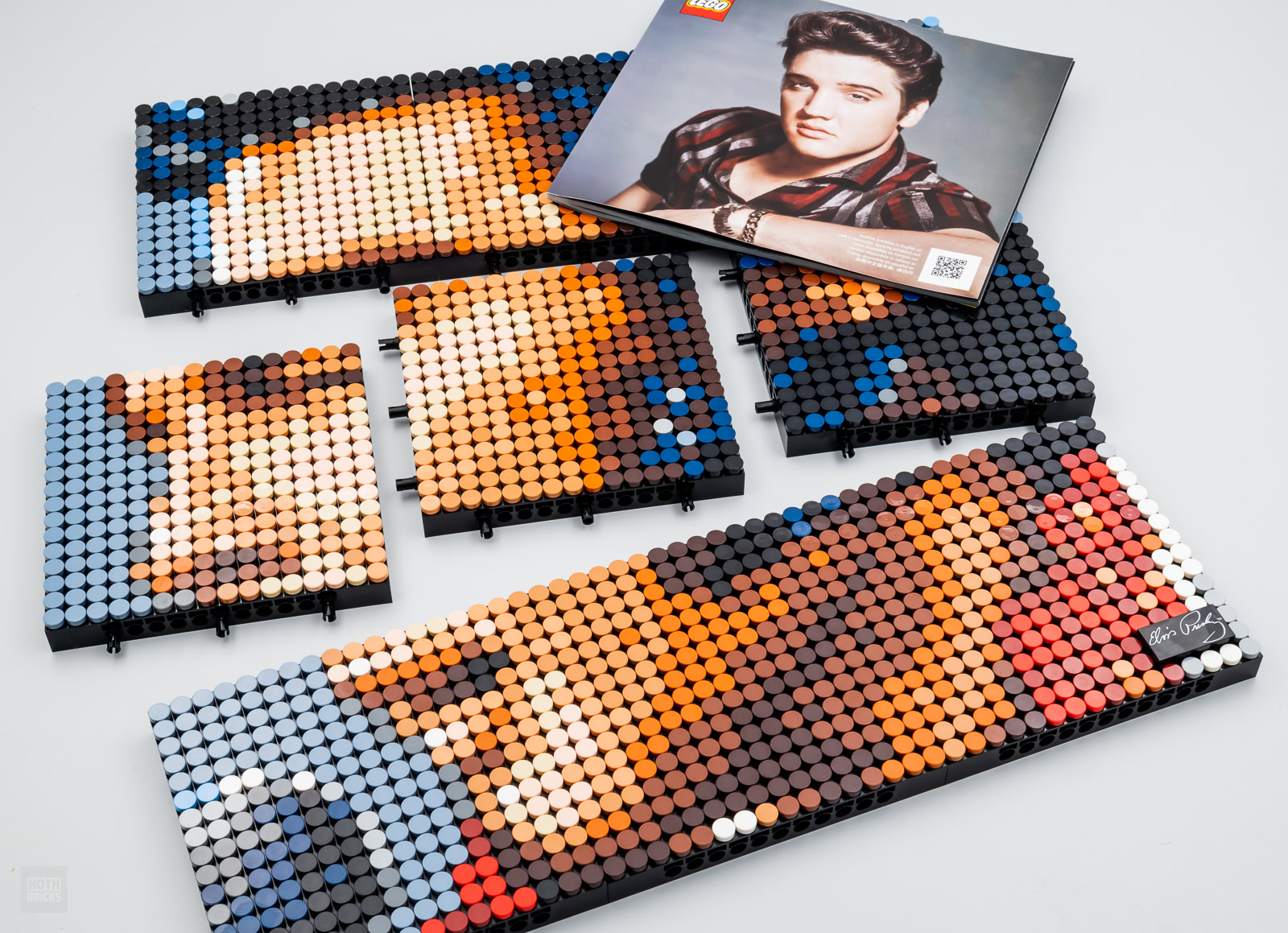Comme souvent dans cette gamme, les œuvres proposées ne sont réellement lisibles qu'avec un certain recul. Ce n'est d'ailleurs pas du Pixel Art au sens propre du terme, avec ses subtilités qui en font un exercice artistique vraiment original. LEGO nous propose ici de simple photos converties en mosaïques aux aplats de couleurs plus ou moins grossiers. Tant mieux pour l'effet vintage et le gommage des défauts du visage d'Elvis, tant pis pour le photo-réalisme de la chose.