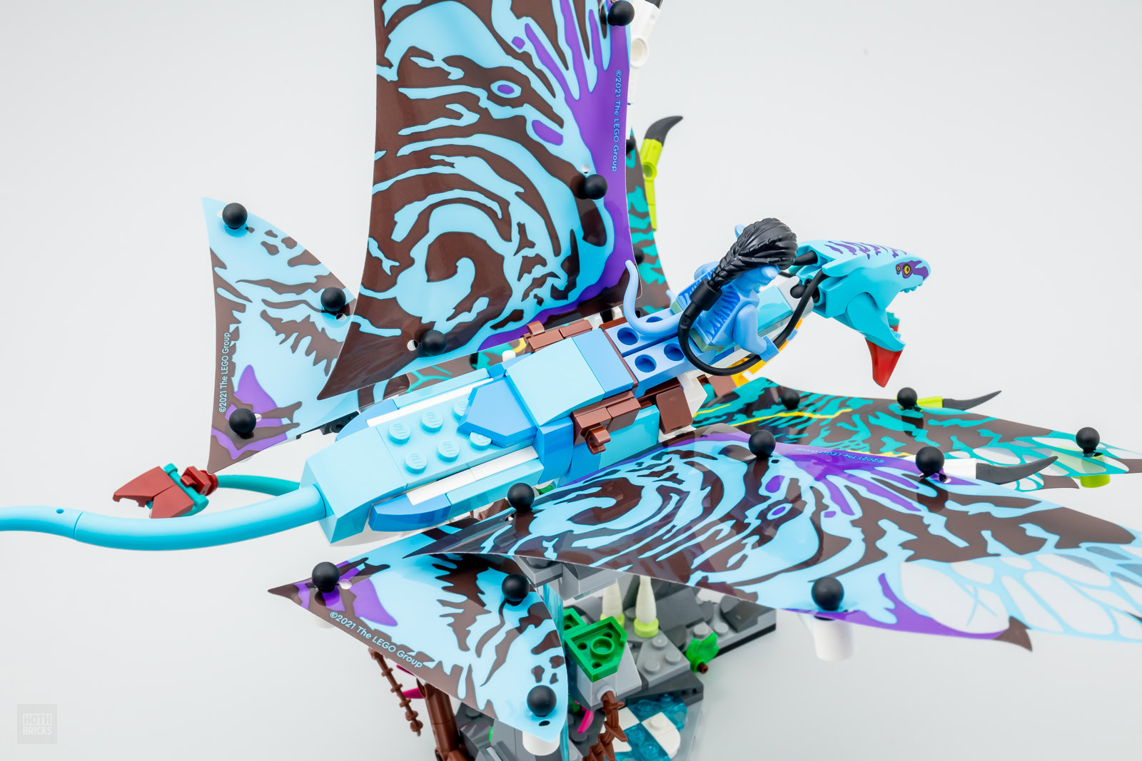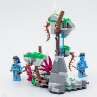 Difficile d'évoquer l'univers d'Avatar sans mentionner les Banshees (ou Ikrans en langage Na'vi), ces grands volatiles que les Na'vis domptent et chevauchent sur Pandora. LEGO y va donc de son interprétation de ces créatures avec une boite en proposant deux exemplaires à mettre en scène sur un support constitué de quelques rochers, d'une cascade et d'un peu de végétation.