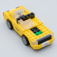 Les deux véhicules ne sont pas l'échelle l'un de l'autre, vous vous en doutez. Le taxi new-yorkais de 124 pièces est d'ailleurs étrangement "écrasé" au niveau de l'habitacle et on ne peut pas vraiment dire que LEGO réussit à nous vendre une Ford Crown Victoria. Mais c'est du Creator à 9.99 € et la simplification est de mise. Le taxi est en 6 tenons de large, ce qui devrait faire plaisir aux fans de la gamme LEGO Speed Champions qui n'ont pas apprécié le récent changement de format des véhicules de la gamme. Pas de pare-brise élaboré, on se contente de quelques briques presque transparentes.