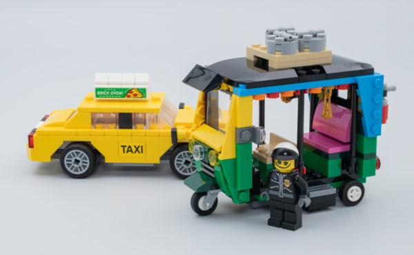 Seul le taxi est accompagné de stickers pour les plaques d'immatriculation, la mention sur les portières et les panneaux publicitaires placés sur le toit. Pas de minifig dans ces deux boites et c'est un peu dommage. Un passager hélant le taxi et un conducteur pour le tuk-tuk auraient été les bienvenus, histoire de faire passer la pilule du prix public de ces petites boites.