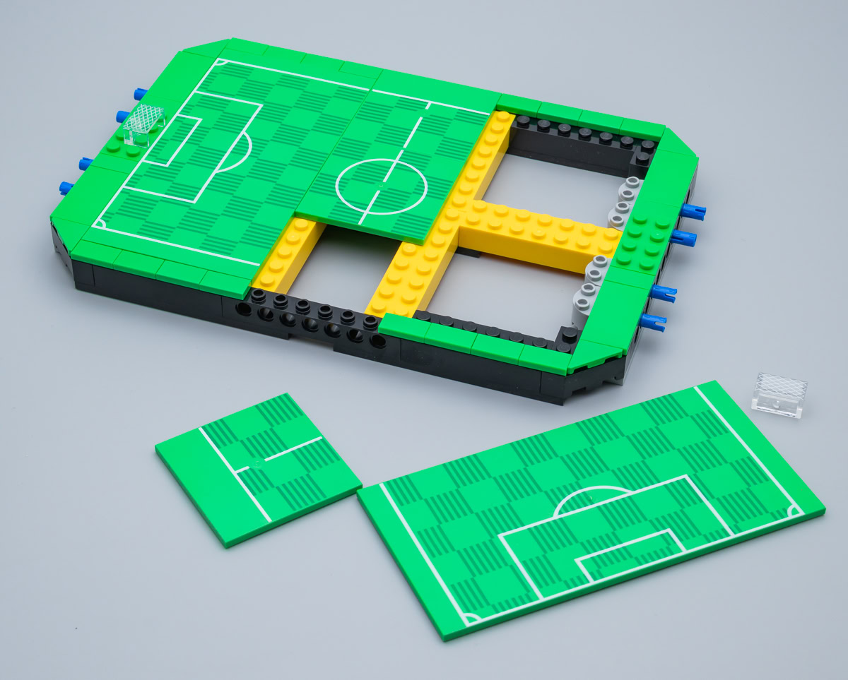 Comme il s'agit ici d'un stade vide, sans joueurs ni public, je pense que LEGO aurait pu jeter dans la boite un présentoir avec deux ou trois joueurs et un ballon, histoire de donner un peu de consistance au produit et de faire plaisir aux fans.