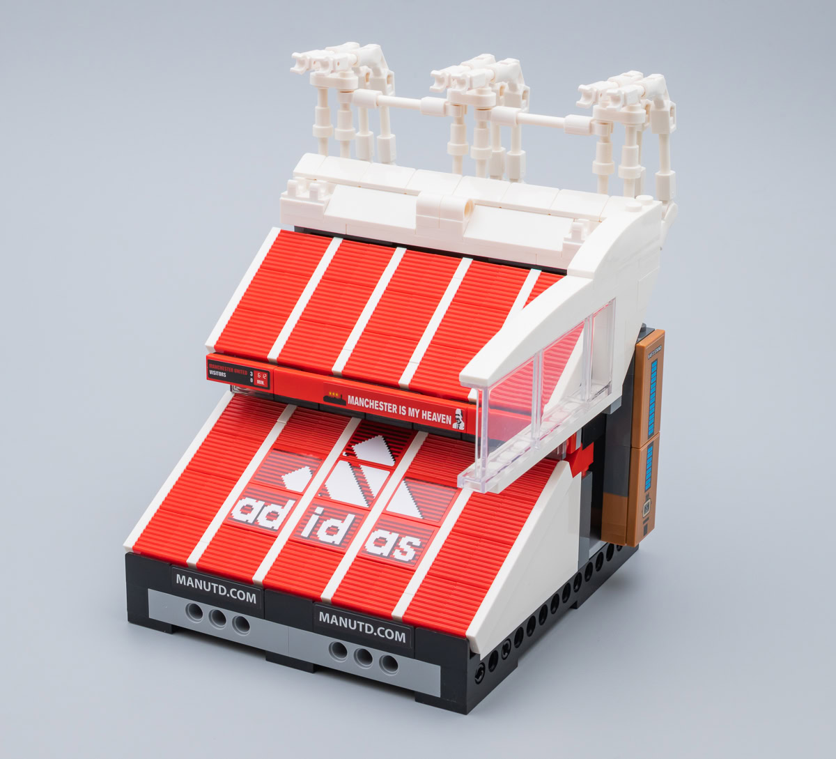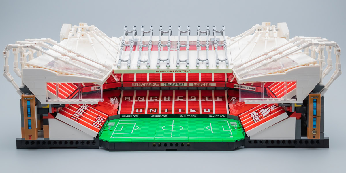 Avant toute chose, il faut placer le set dans son contexte : il s'agit surtout d'un produit destiné aux fans de Manchester United qui ont éventuellement quelques affinités avec les LEGO. Pour beaucoup de fans de l'équipe anglaise, Old Trafford est un stade mythique, comme le sont le Stade Vélodrome pour les fans de l'Olympique de Marseille, Le Parc des Princes pour les fans du Paris Saint-Germain ou Geoffroy-Guichard pour les fans de Saint-Étienne. LEGO n'avait de toute façon pas trop le choix du sujet, c'était le stade ou une série de minifigs à l'effigie des joueurs. Pas de bol pour ceux qui aiment l'équipe mais pas au point de dépenser 270 €, c'est tombé sur le stade.
